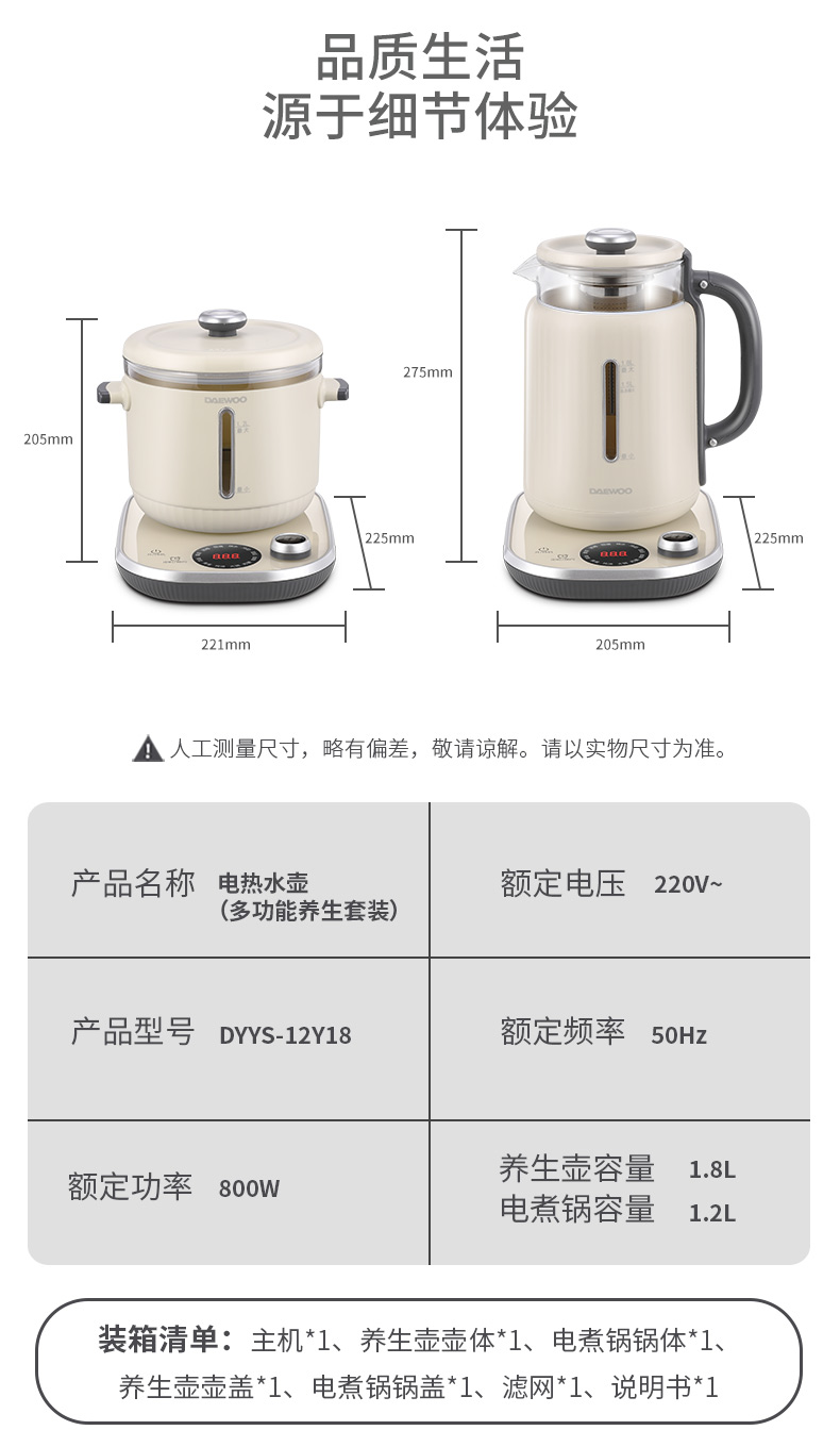 商品名称:DAEWOO/大宇1.8升+1.2升多功能养生两件套DYYS-12Y18