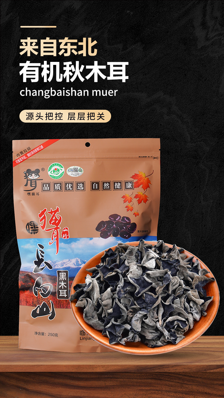 商品名称:嘿猫耳有机长白山黑木耳-小号250g*2袋