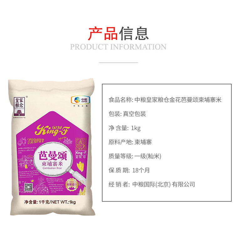 商品名称:中粮皇家粮仓金花芭曼颂柬埔寨米1kg