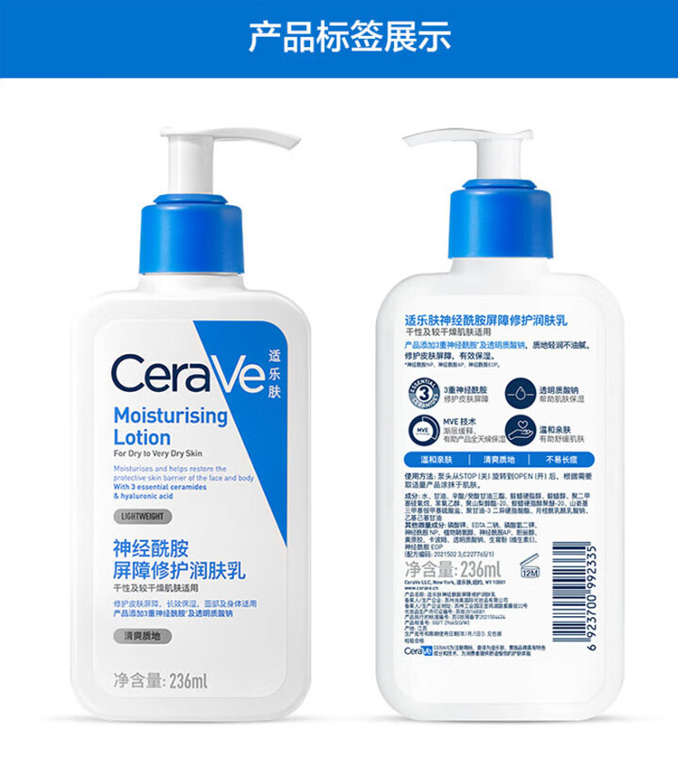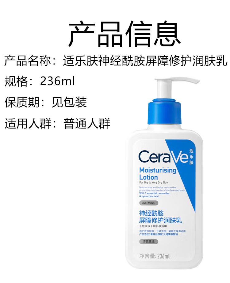 商品名称:CeraVe/适乐肤神经酰胺屏障修护润肤乳236ml