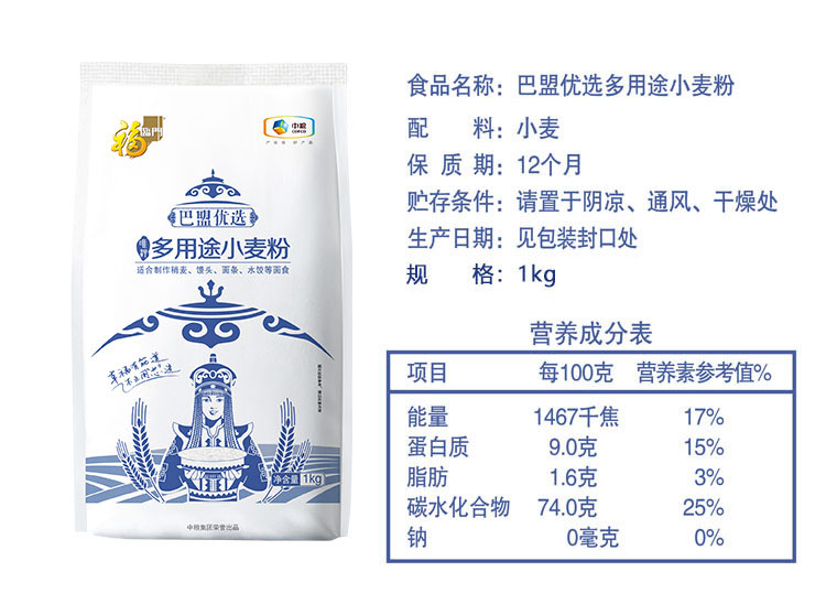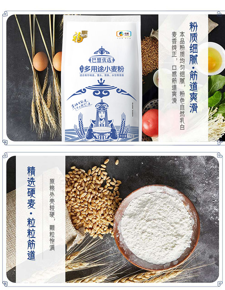 商品名称:中粮福临门巴盟优选多用途小麦粉1kg