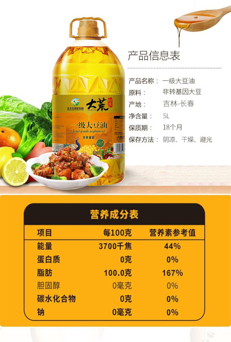 商品名称:大荒印象非转基因一级大豆油5L