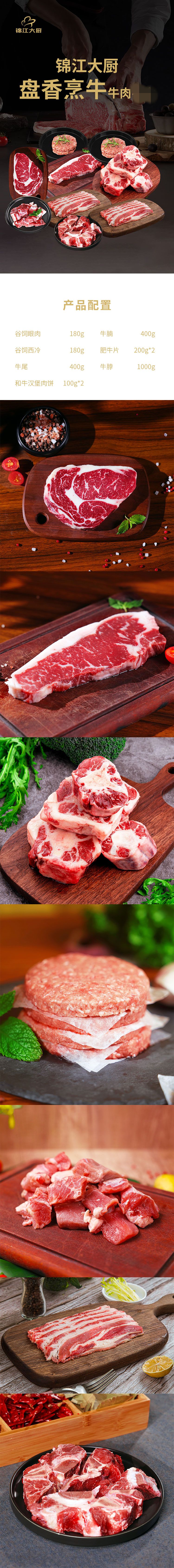 商品名称:【顺丰配送】锦江大厨盘香烹牛牛肉生鲜组合2760g