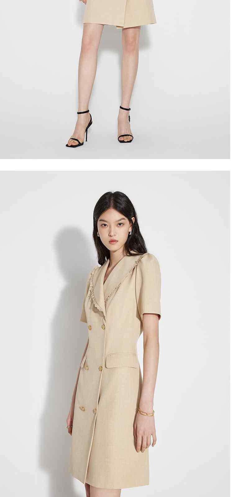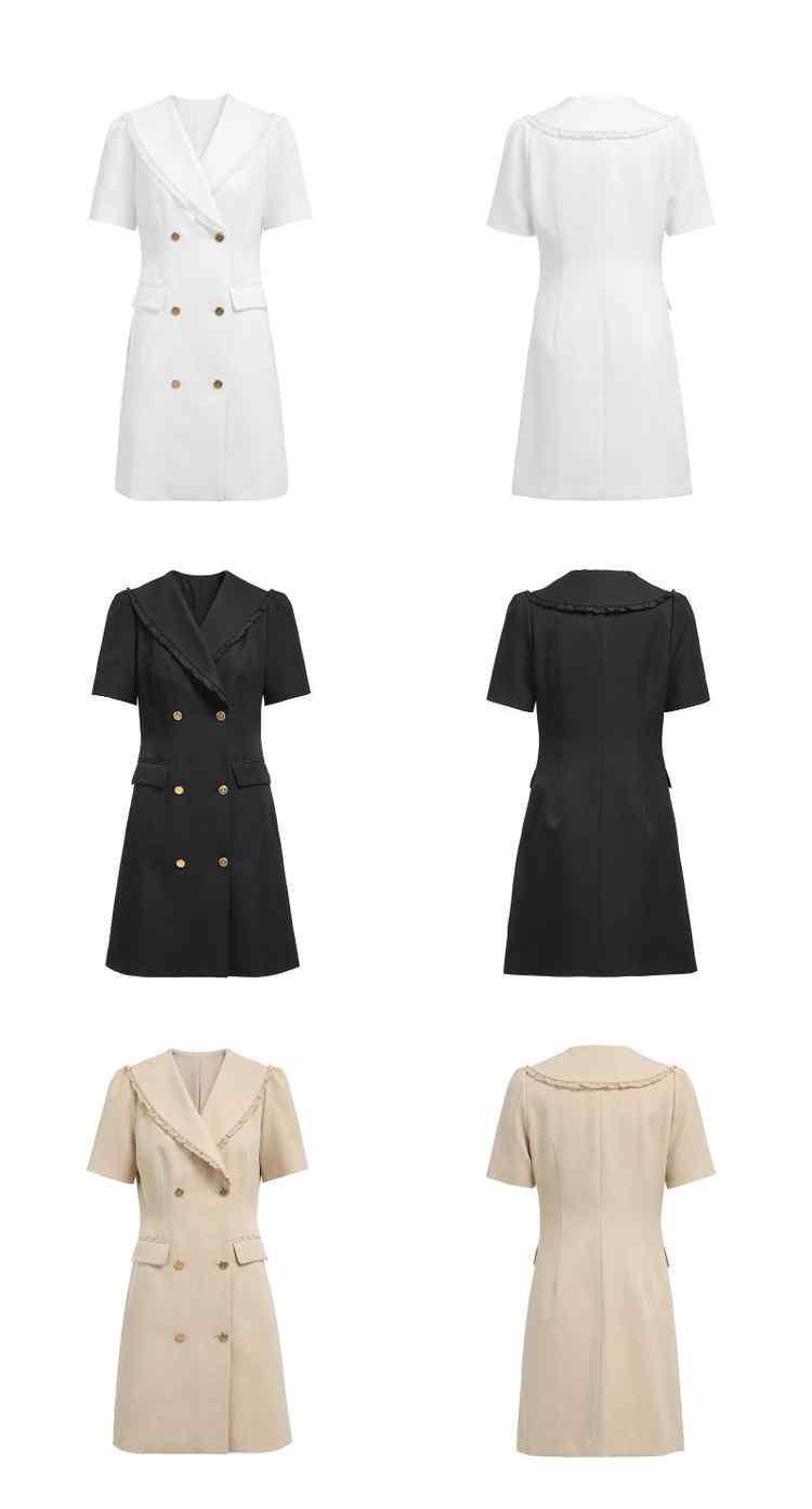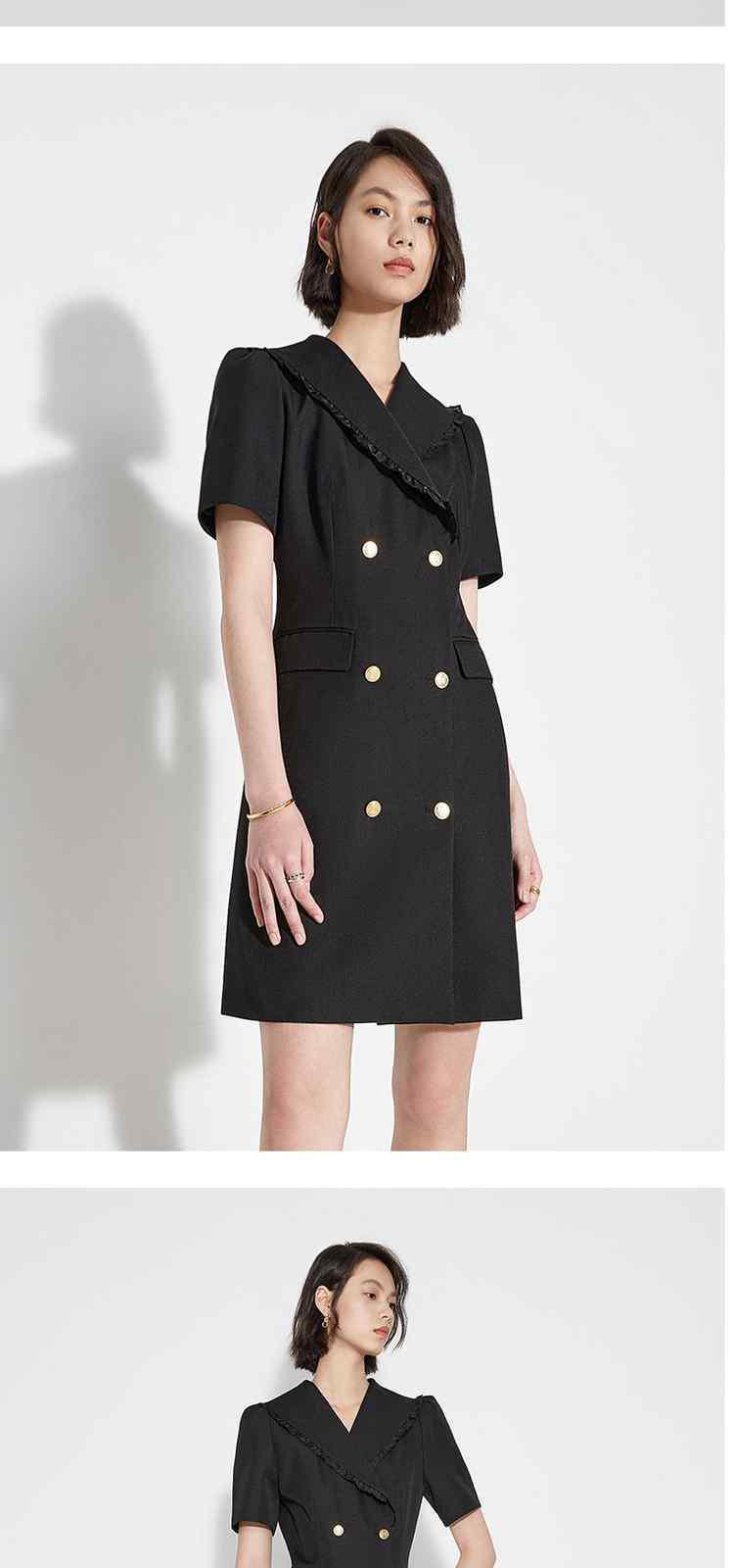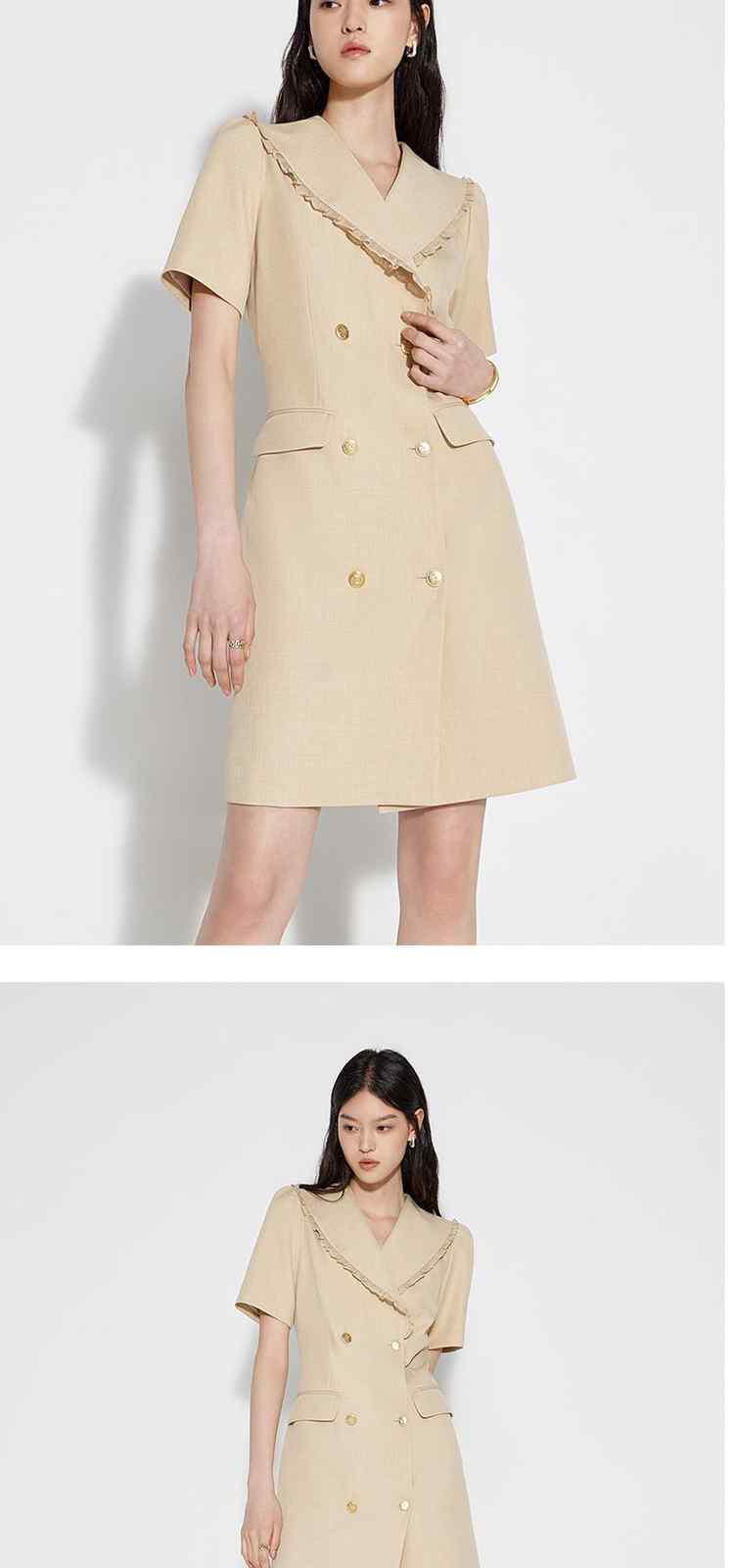 商品名称:春装 双排扣气质通勤荷叶边西装式连衣裙女 480911