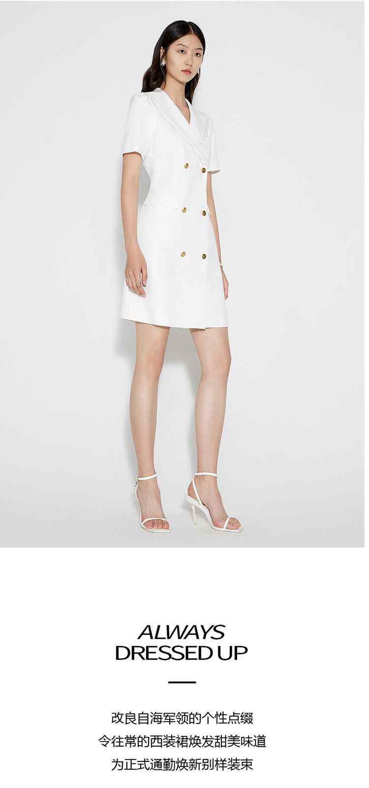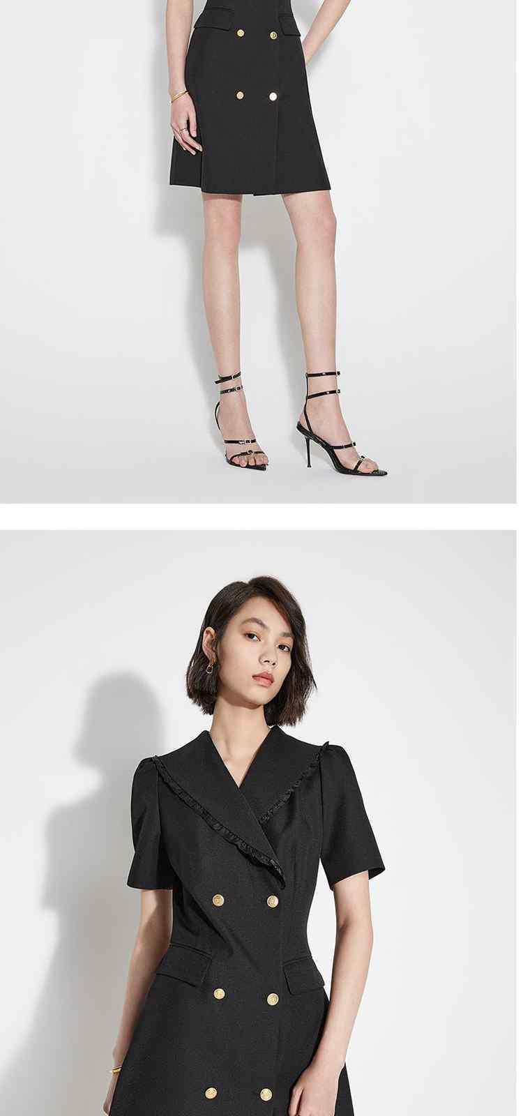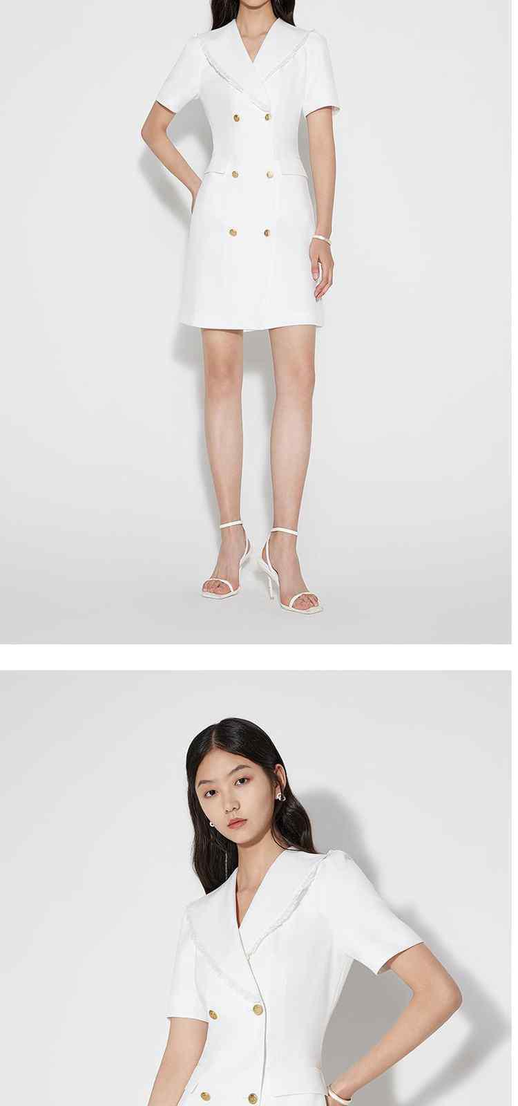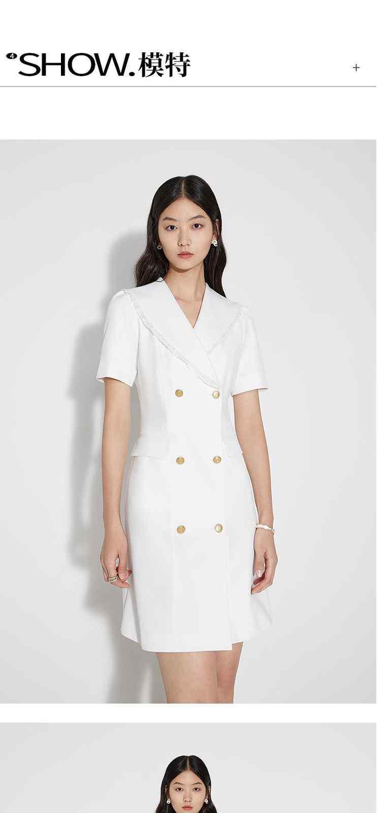 商品名称:春装 双排扣气质通勤荷叶边西装式连衣裙女 480911