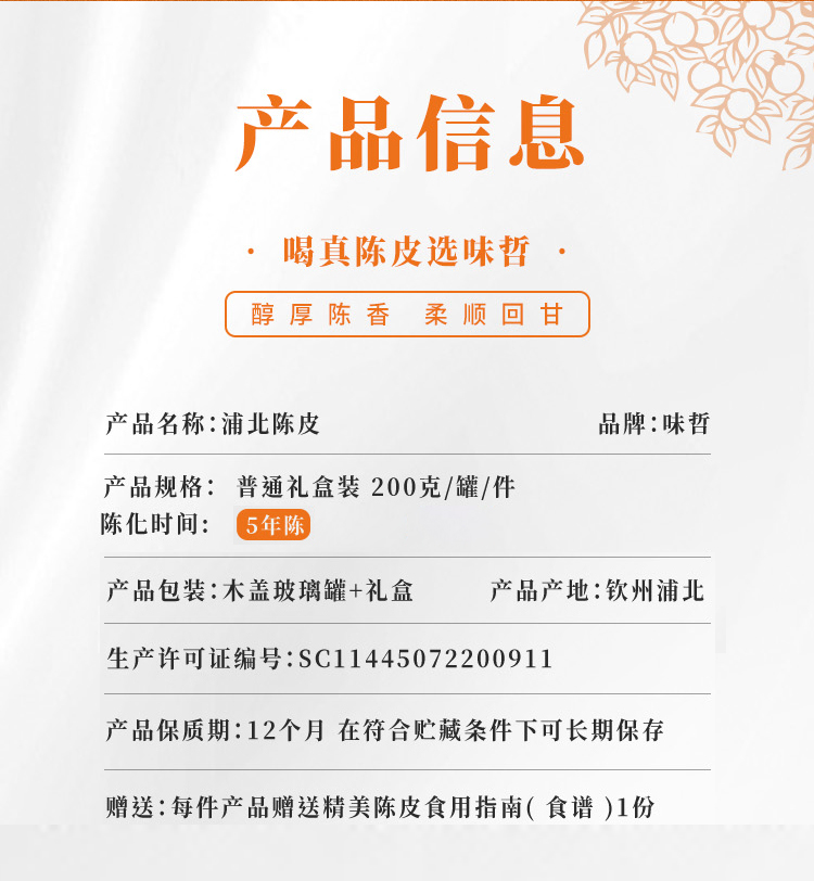 商品名称:味哲五年浦北陈皮200g