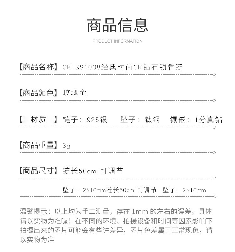 商品名称:Cmierf Kuect/中国CK经典时尚CK钻石锁骨项链CK-SS1008