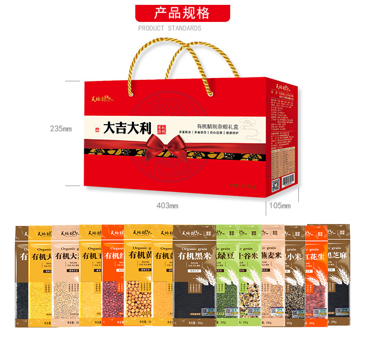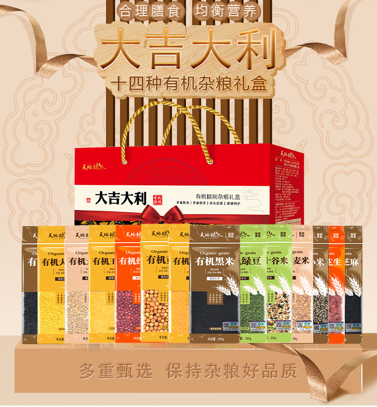 商品名称:【顺丰配送】天地粮人大吉大利有机精制杂粮礼盒4.575kg