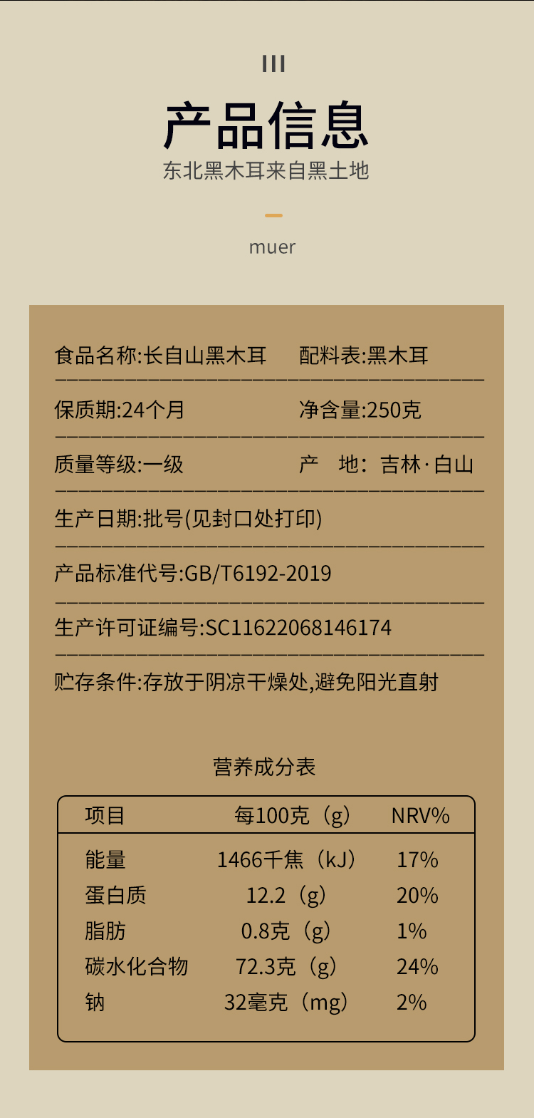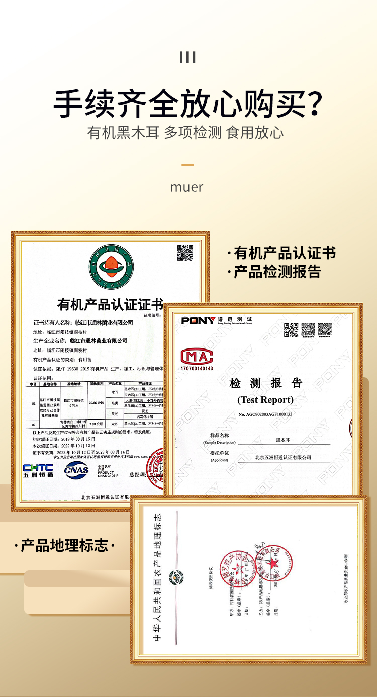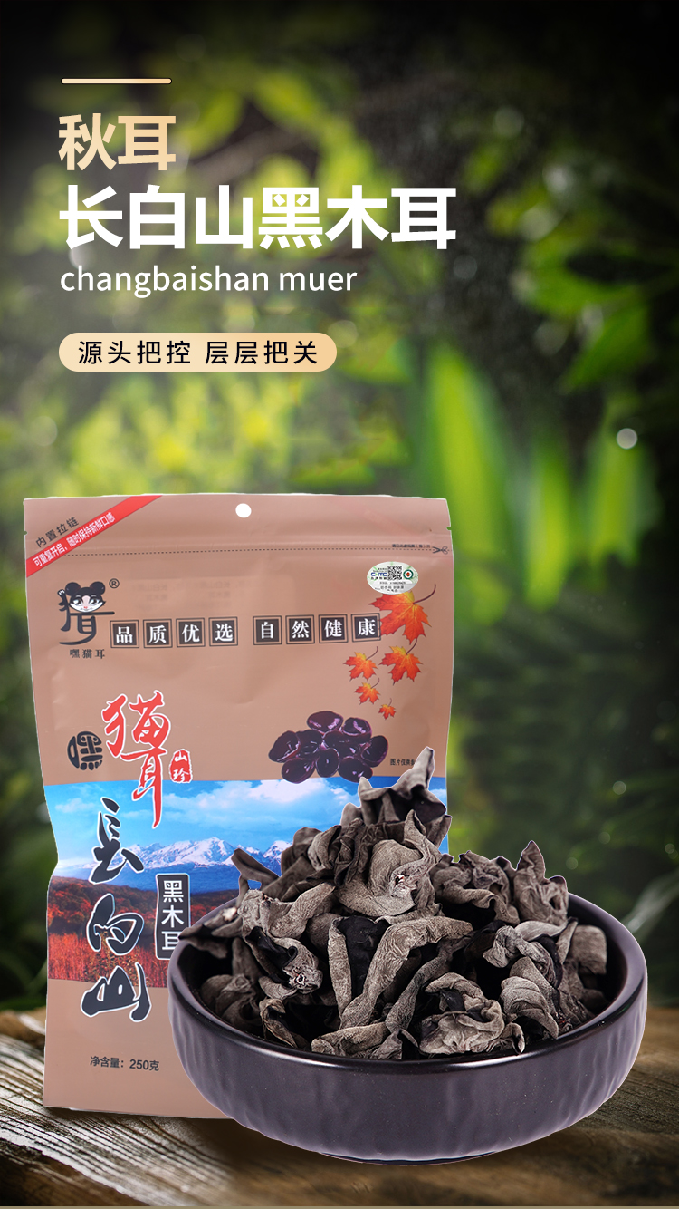 商品名称:嘿猫耳有机长白山黑木耳-中号250g*2袋