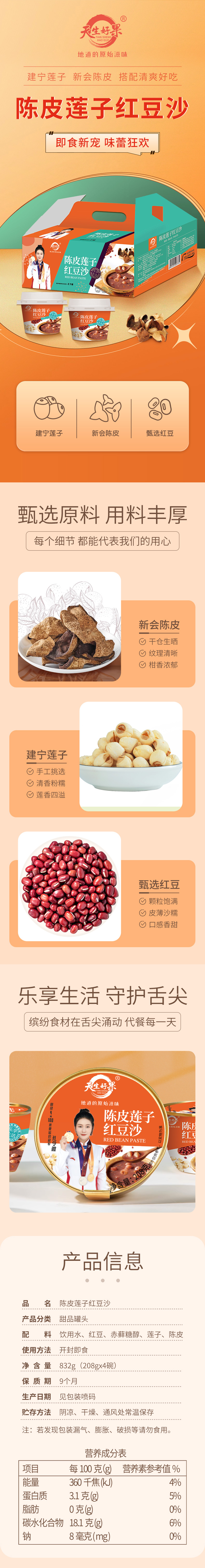 商品名称:天生好果即食陈皮莲子红豆沙832g