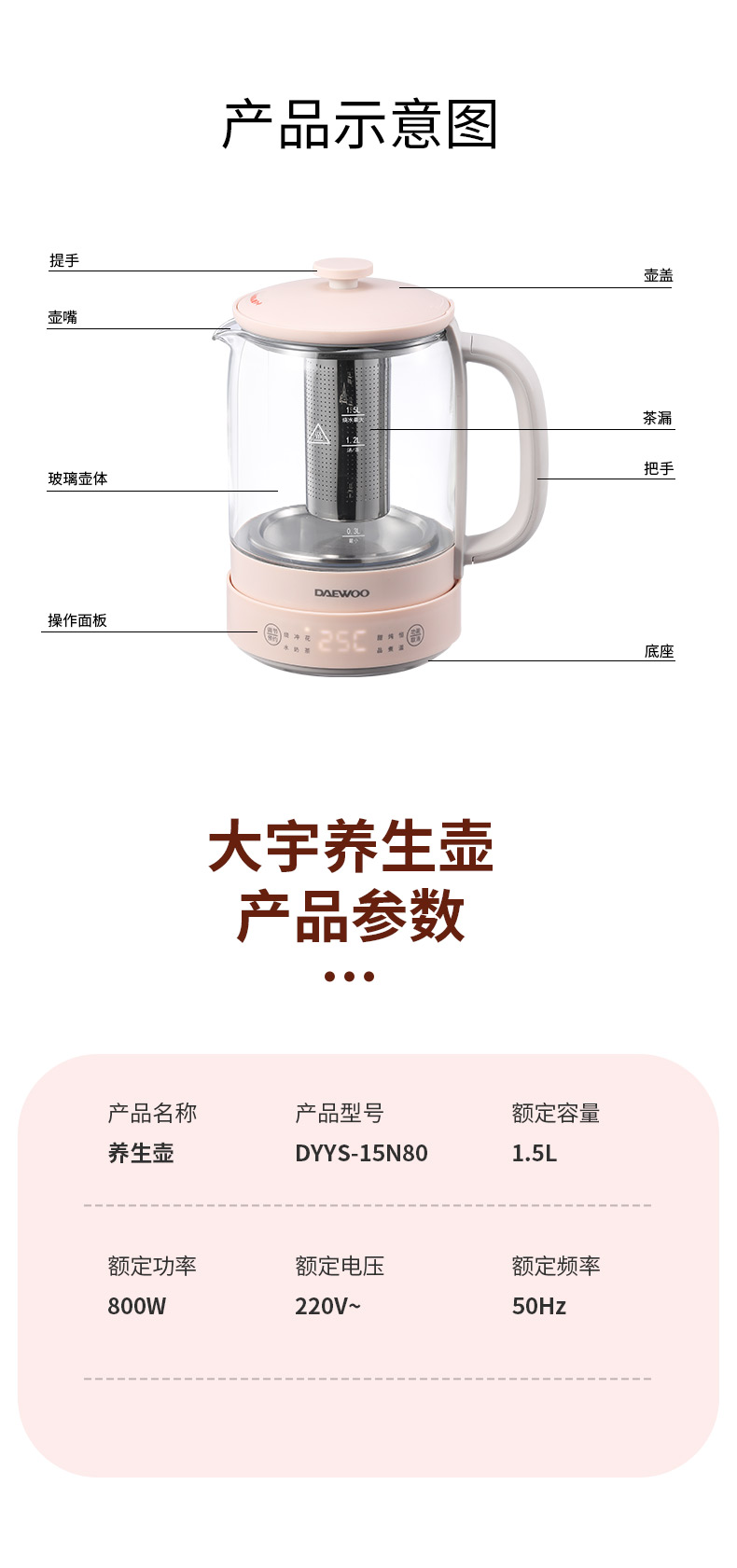 商品名称:DAEWOO/大宇1.5升养生壶DYYS-15N80