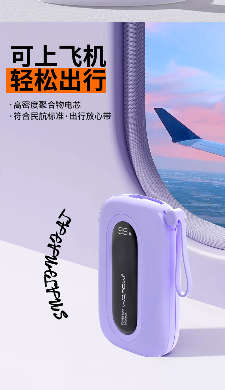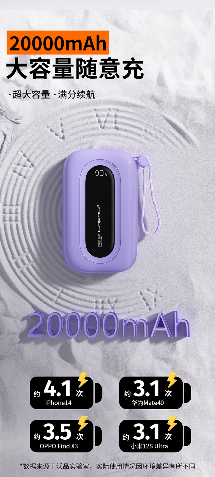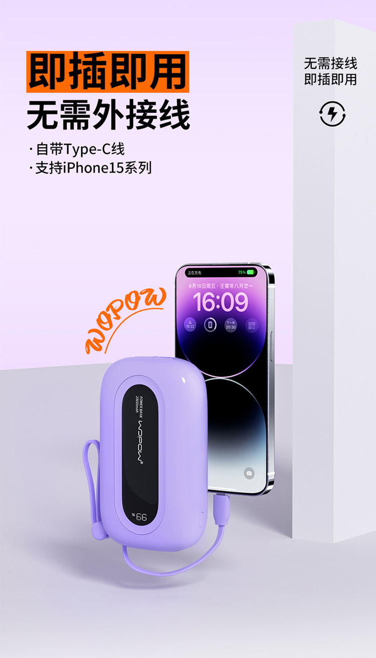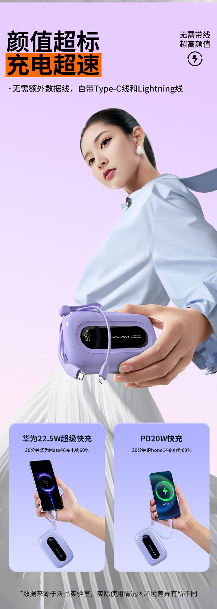 WOPOW/沃品20000毫安自带线小彩蛋快充移动电源SQ37