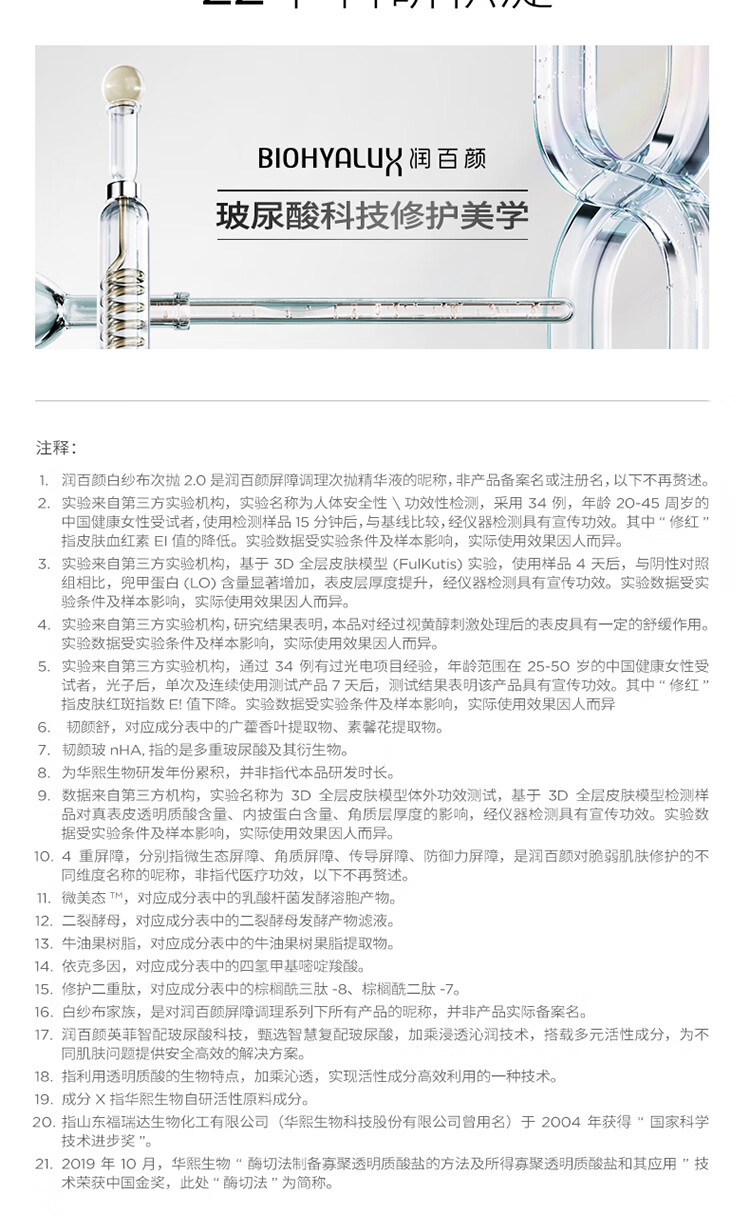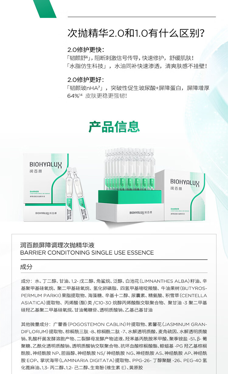 商品名称:BIOHYALUX/润百颜玻尿酸屏障调理次抛精华液1.5ml*5支(专柜版)