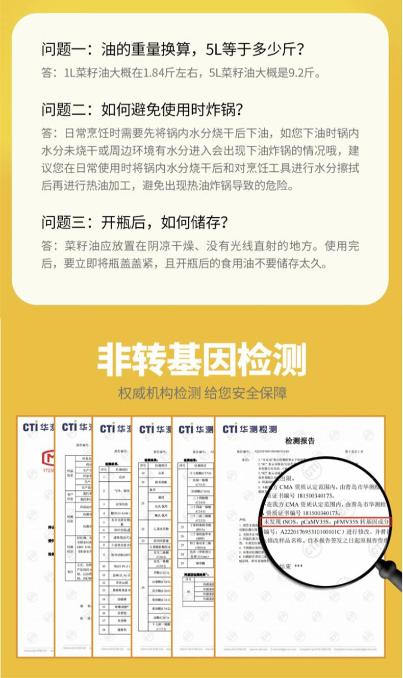 商品名称:大荒印象小榨香菜籽油5L