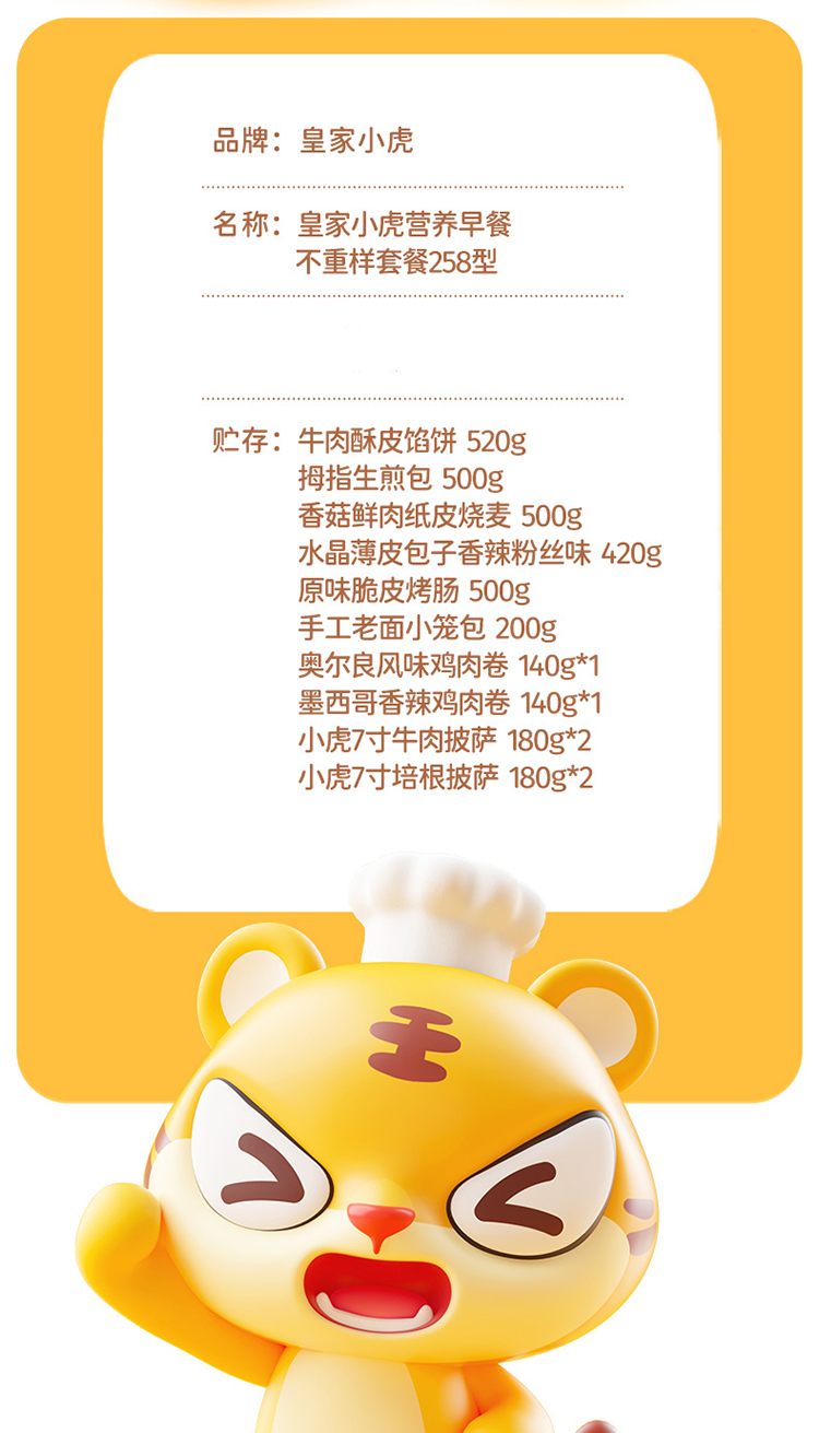 商品名称:皇家小虎营养早餐不重样速冻食品组合258型3640g