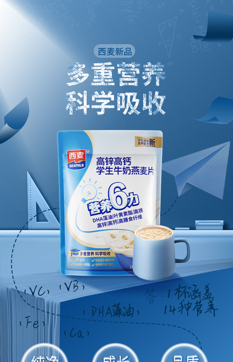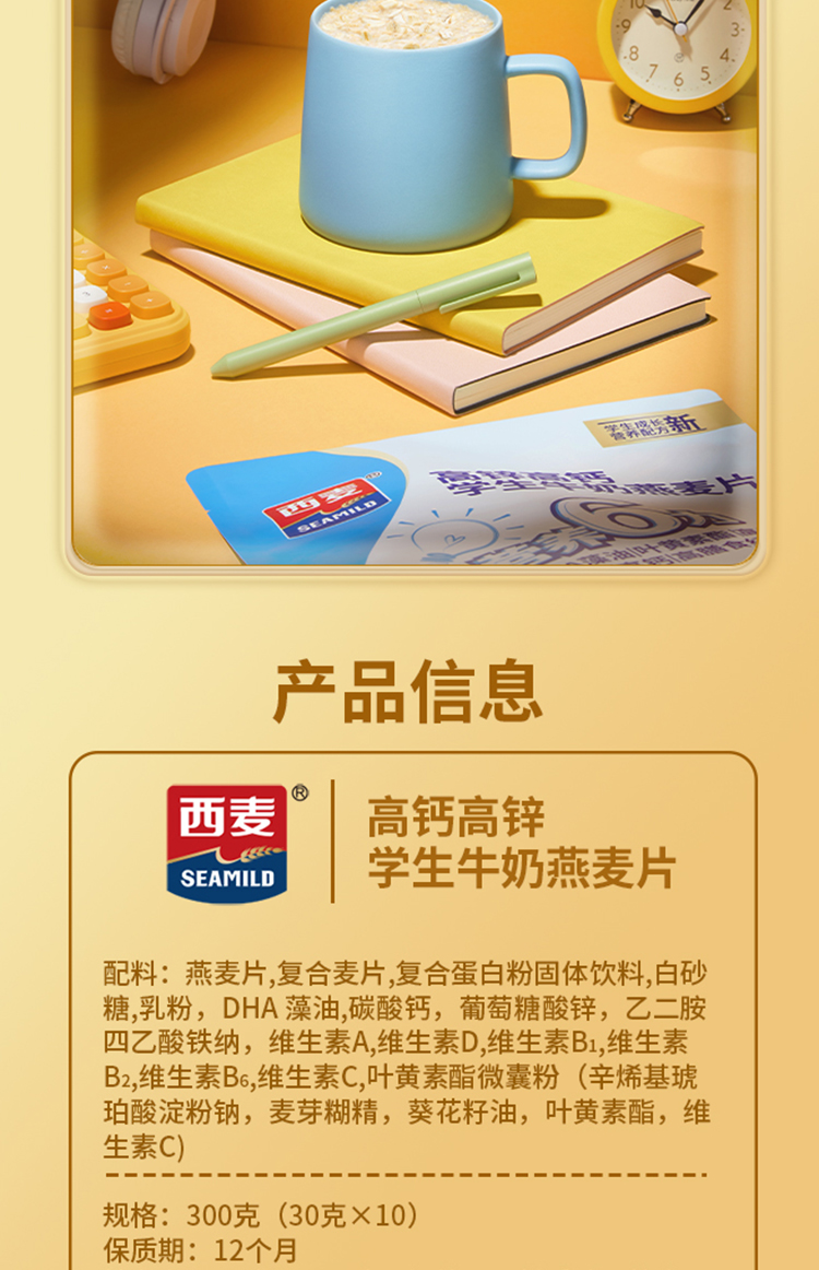 SEAMILD/西麦高锌高钙学生牛奶燕麦片300g*4袋
