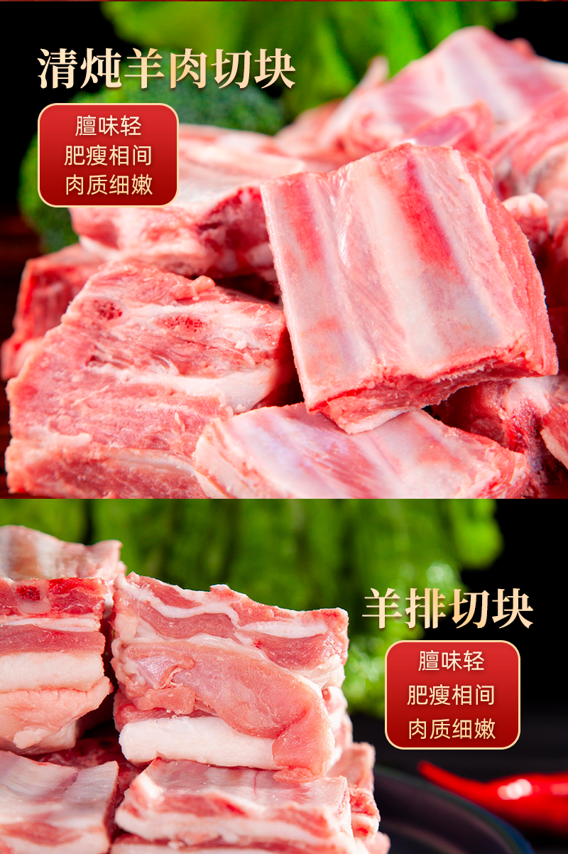 889套餐(清炖羊肉切块500g*2+羊排切块500g前腿切片500g+羊棒骨/羊拐筋(随机二选一不接受指定)500g)