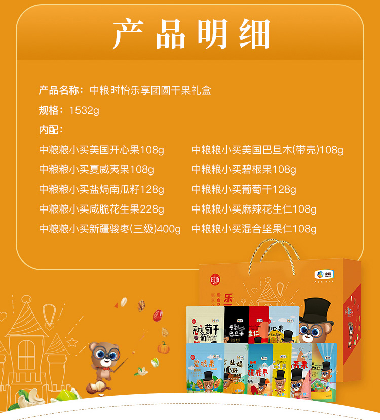 商品名称:中粮时怡乐享团圆干果零食礼盒1532g 新老包装随机不接受指定