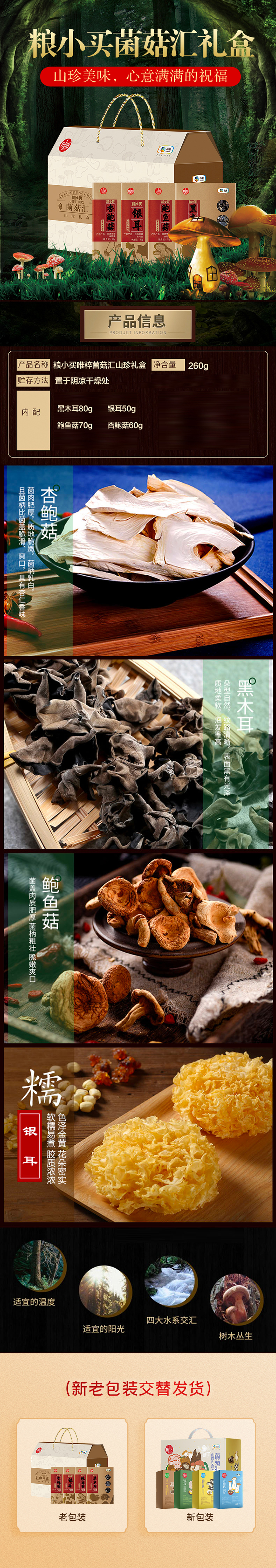 商品名称:中粮粮小买唯粹菌菇汇礼盒260g 新老包装随机不接受指定