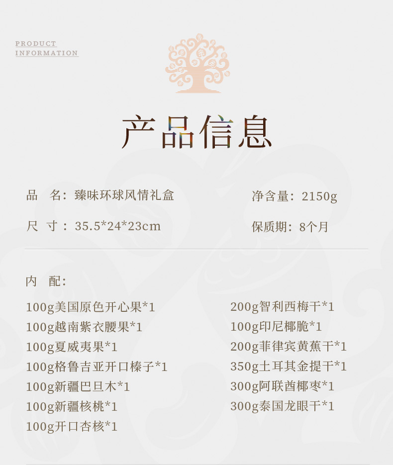 商品名称:臻味环球风情坚果果干礼盒2150g