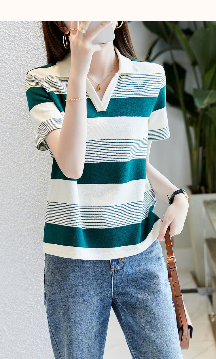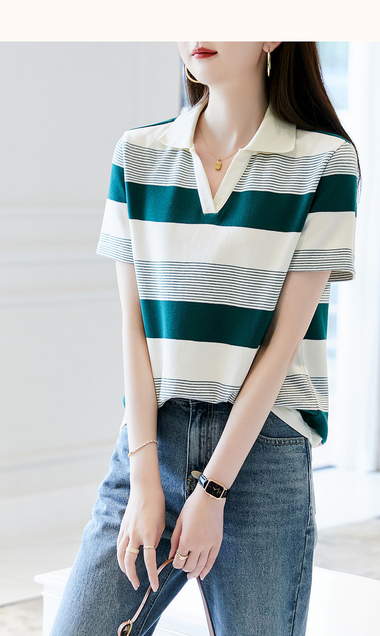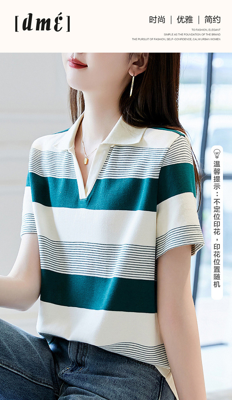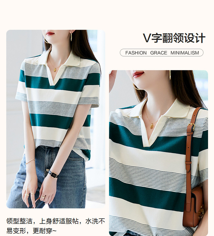 商品名称:【通勤精梳棉女式t恤】夏季翻领微弹短袖t恤女 637825