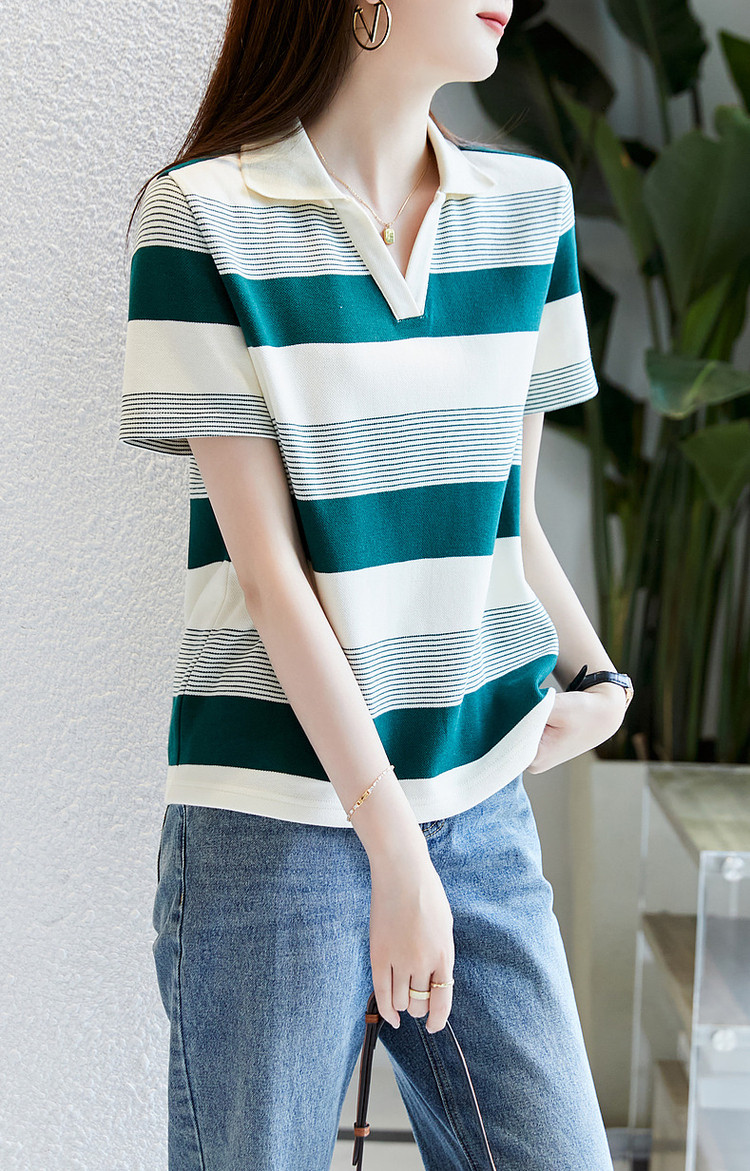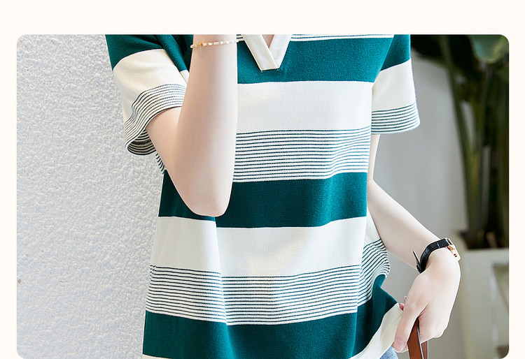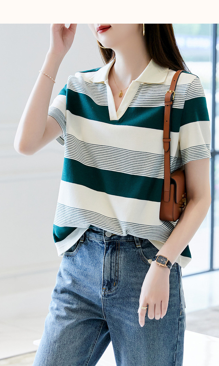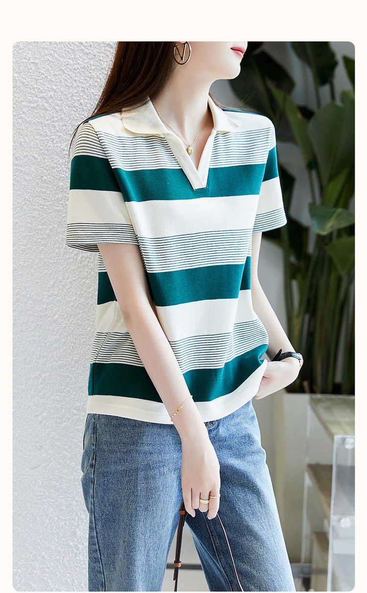 商品名称:【通勤精梳棉女式t恤】夏季翻领微弹短袖t恤女 637825