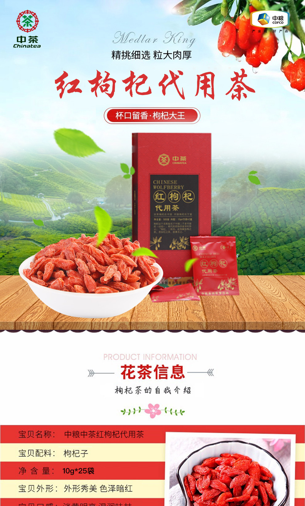 商品名称:中粮中茶红枸杞代用茶250g