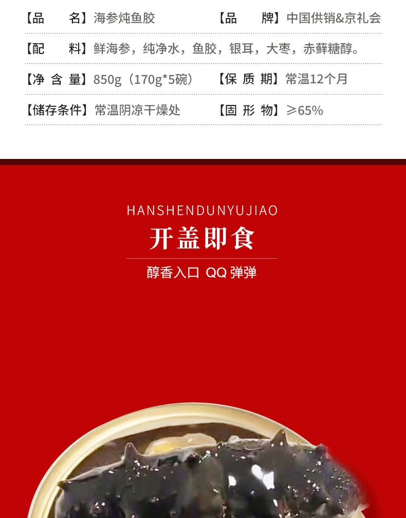 商品名称:京礼会海参炖鱼胶礼盒850g