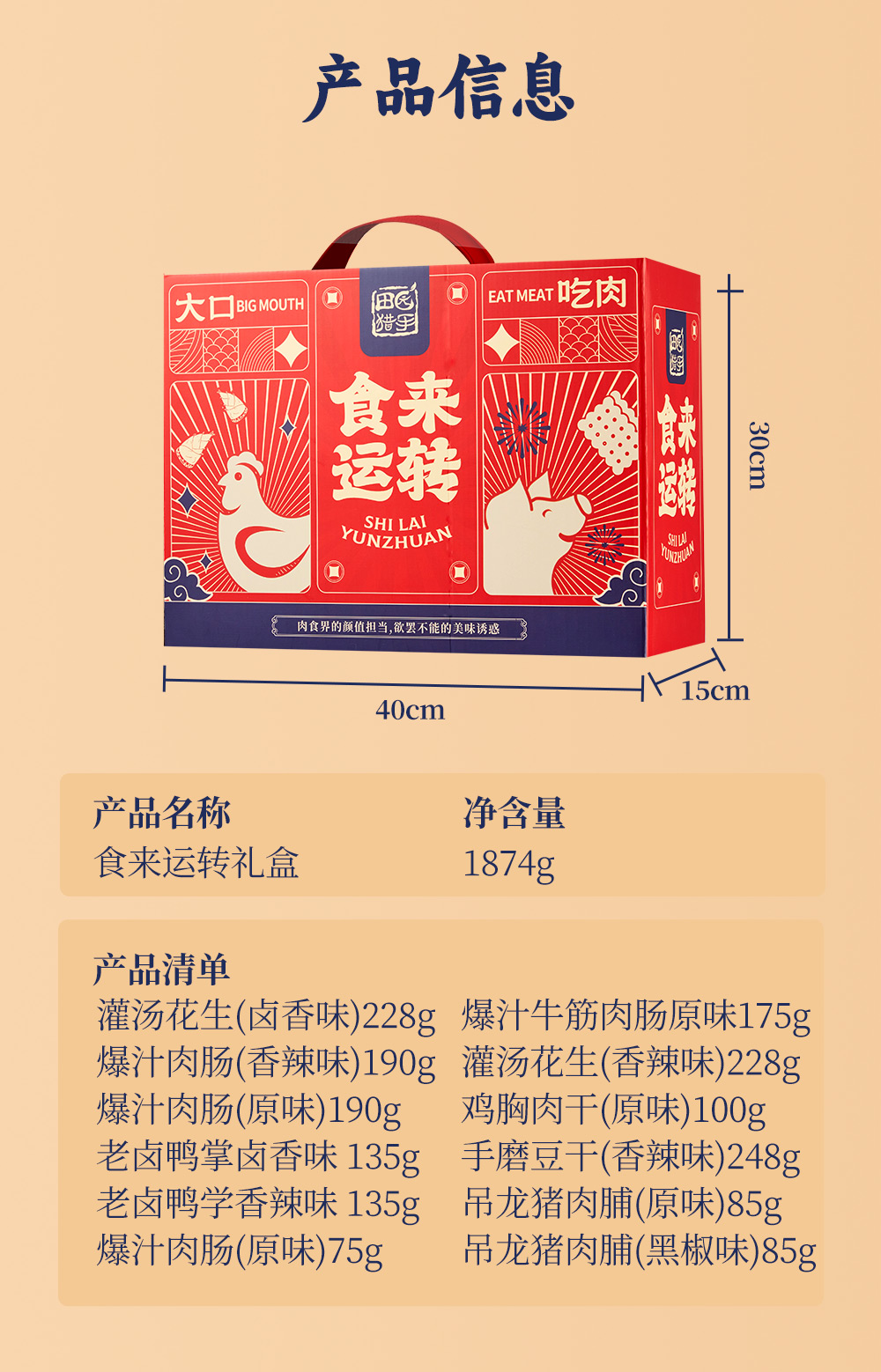商品名称:田园猎手食来运转肉肉零食礼盒1874g