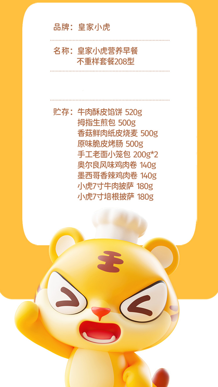 商品名称:皇家小虎营养早餐不重样速冻食品组合208型3060g