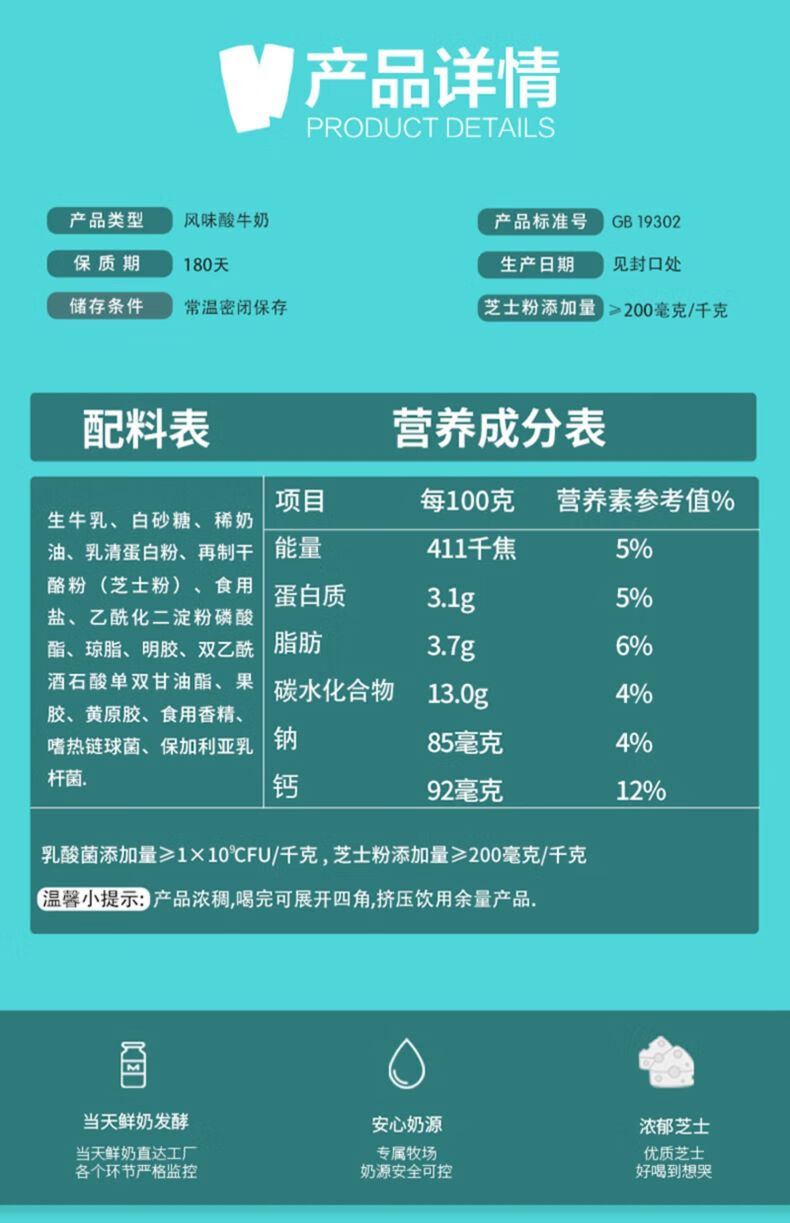 商品名称:【顺丰发货】君乐宝涨芝士啦原味酸奶整箱200g*12盒