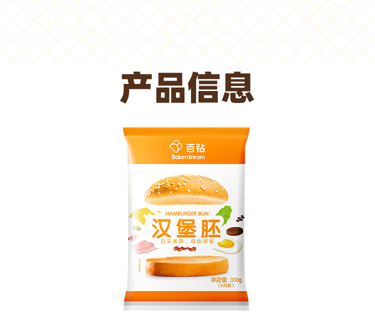 商品名称:Bakerdream/百钻汉堡胚330g*2袋