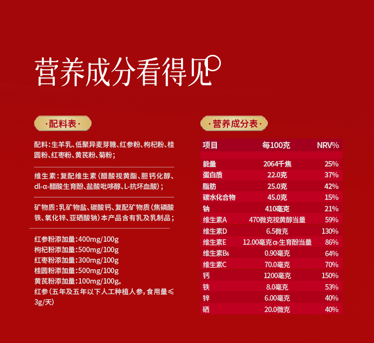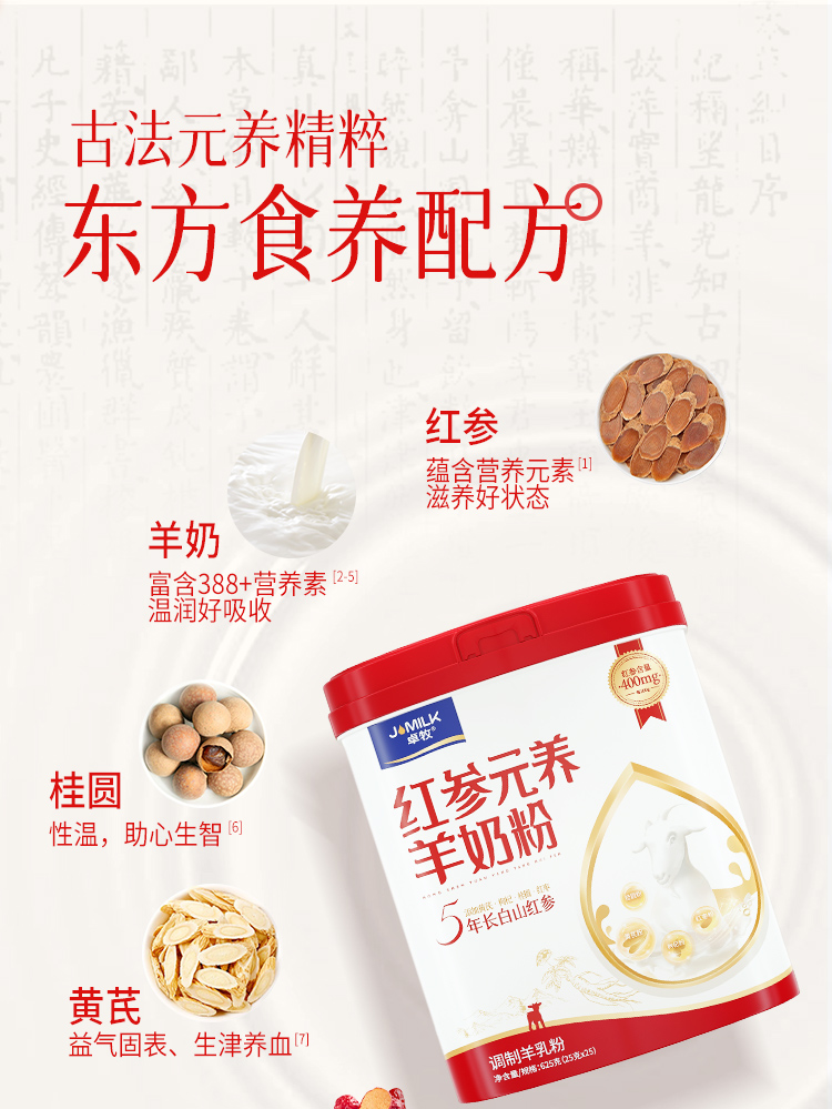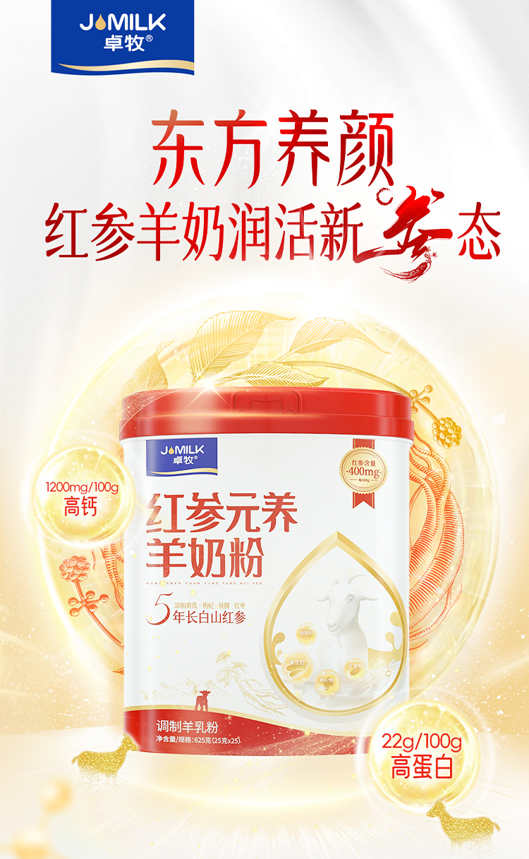 商品名称:JOMILK/卓牧红参元养羊奶粉625g