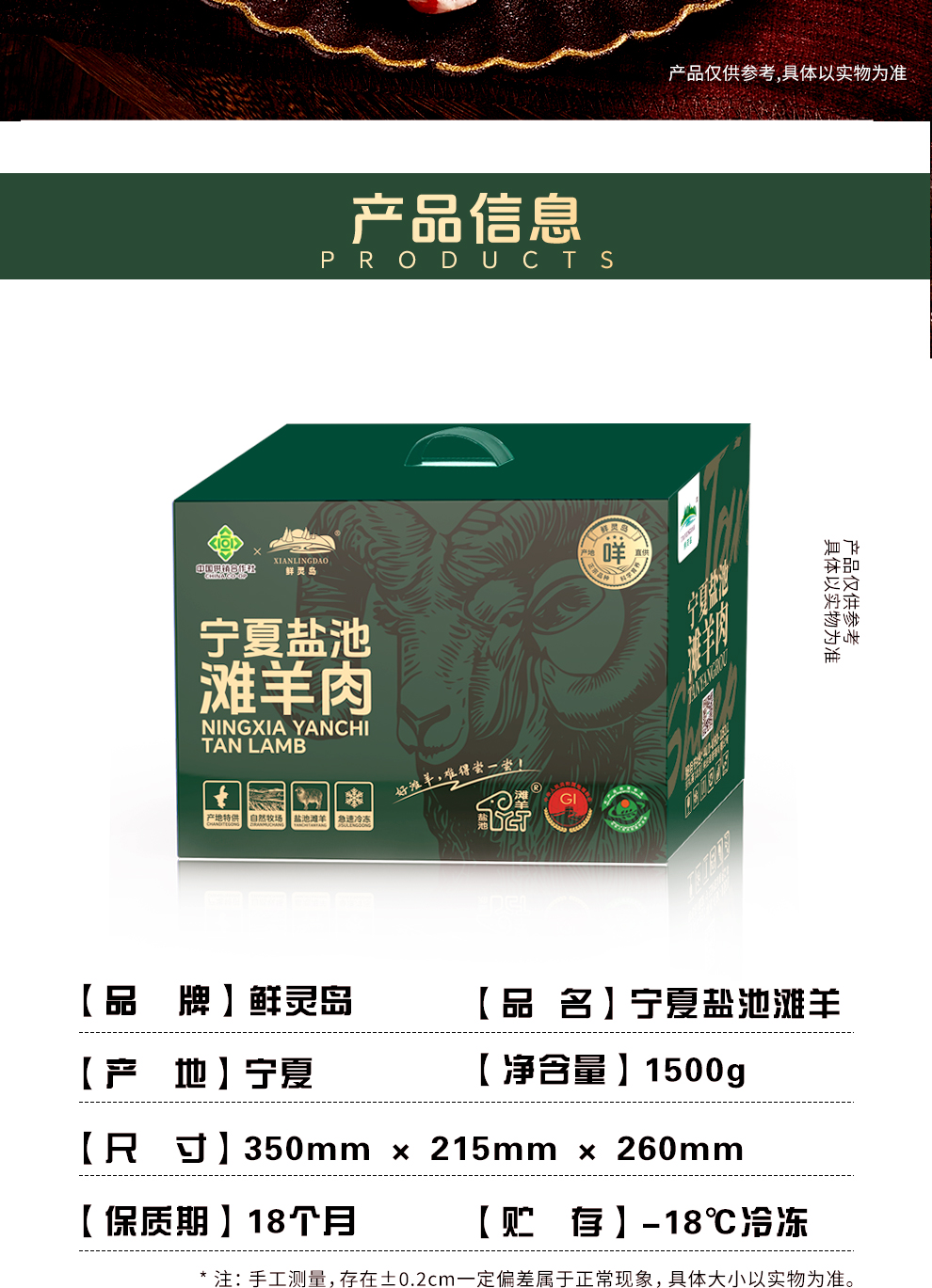 商品名称:【顺丰配送】鲜灵岛宁夏盐池滩羊礼盒A款1500g