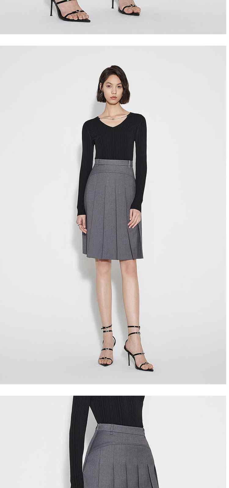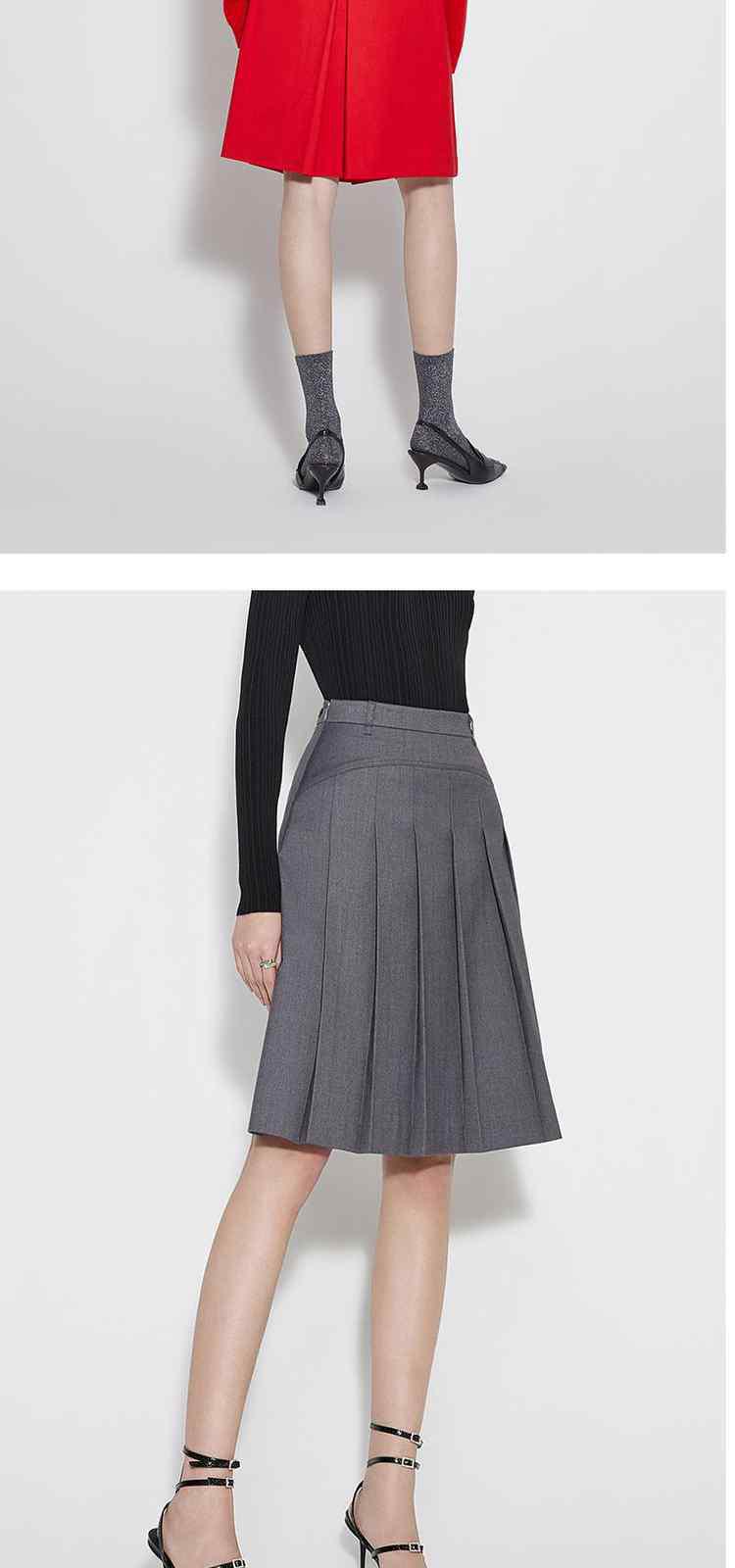 商品名称:春装复古伞裙a字中裙高腰百褶裙半身裙女 984399