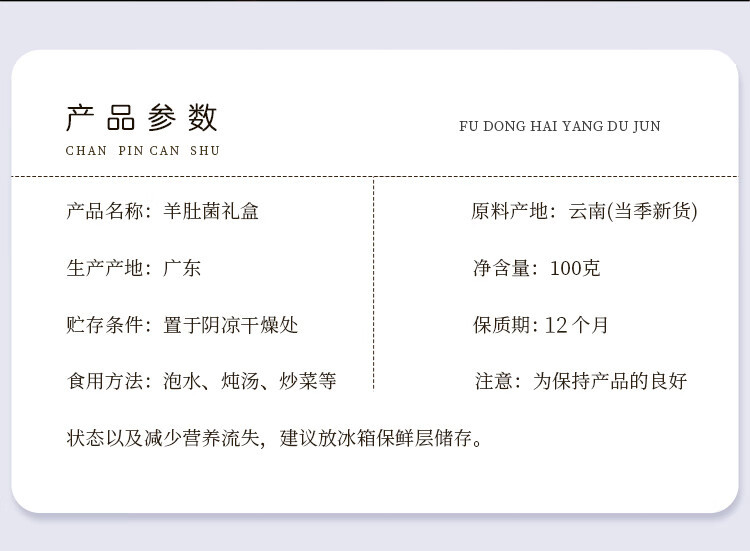 商品名称:福东海羊肚菌礼盒100g