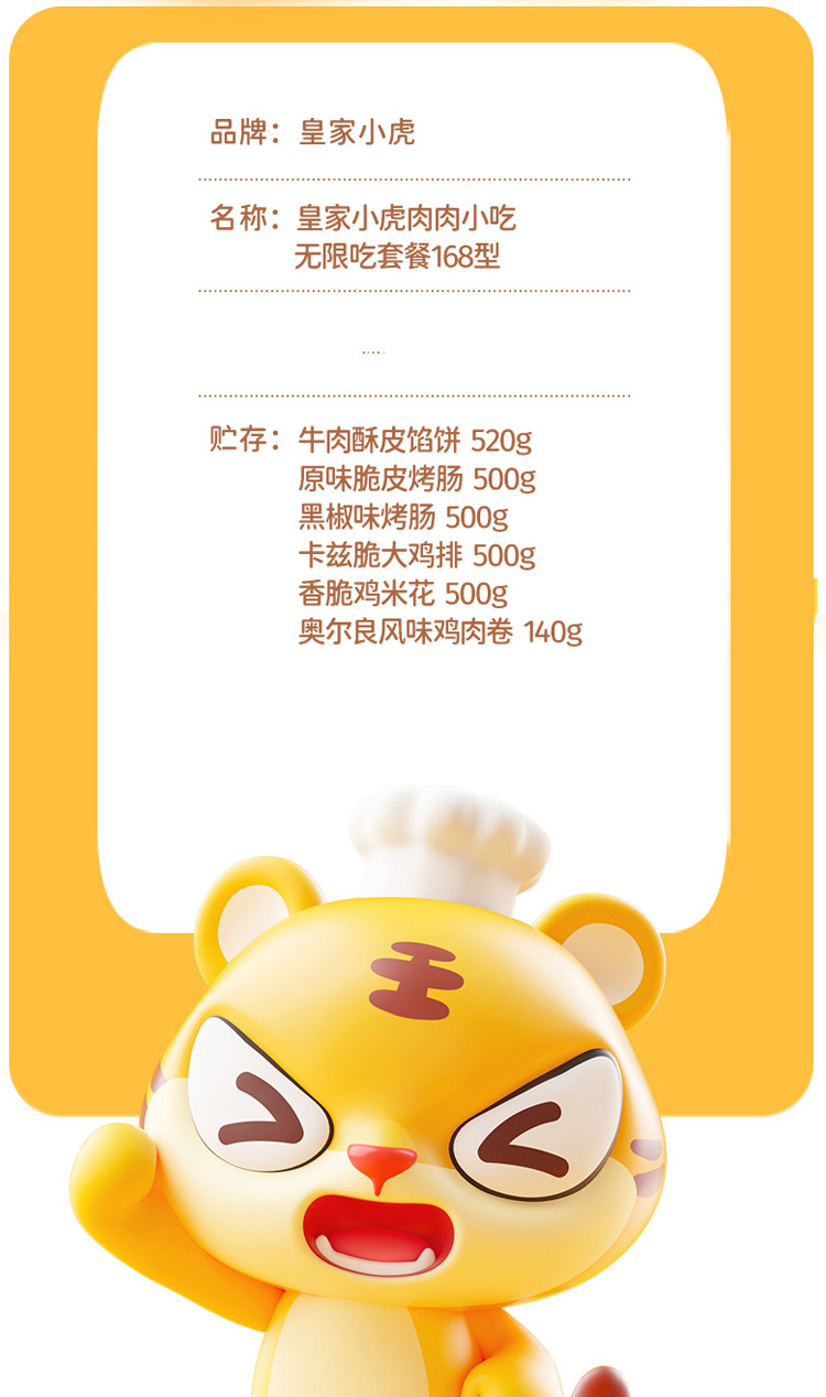 商品名称:皇家小虎肉肉无限吃速冻食品组合168型2660g
