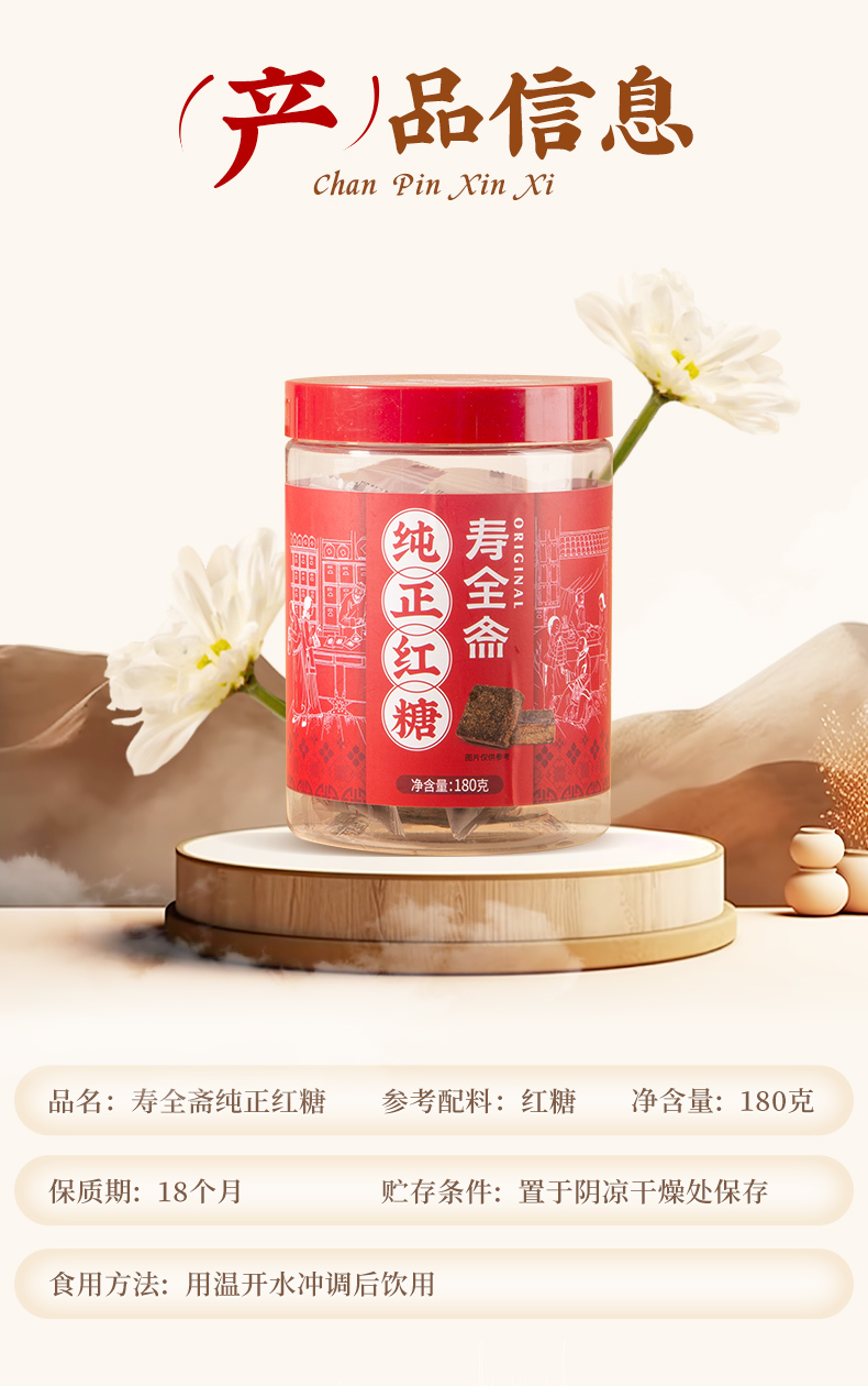 商品名称:寿全斋纯正红糖块180g