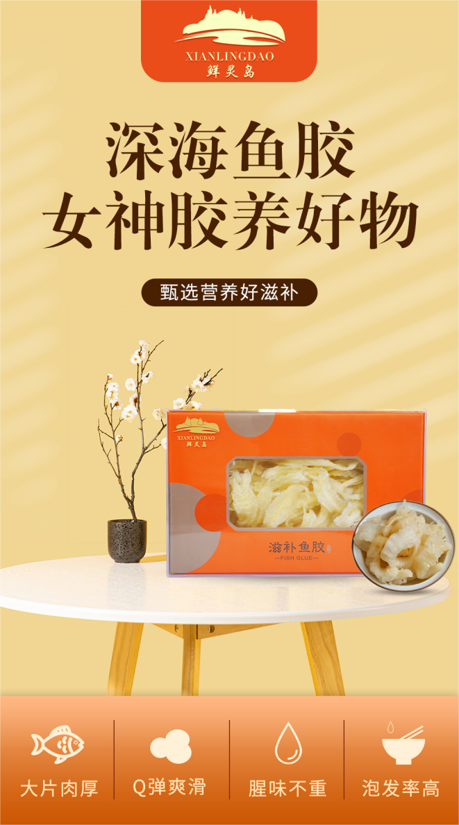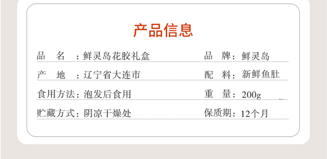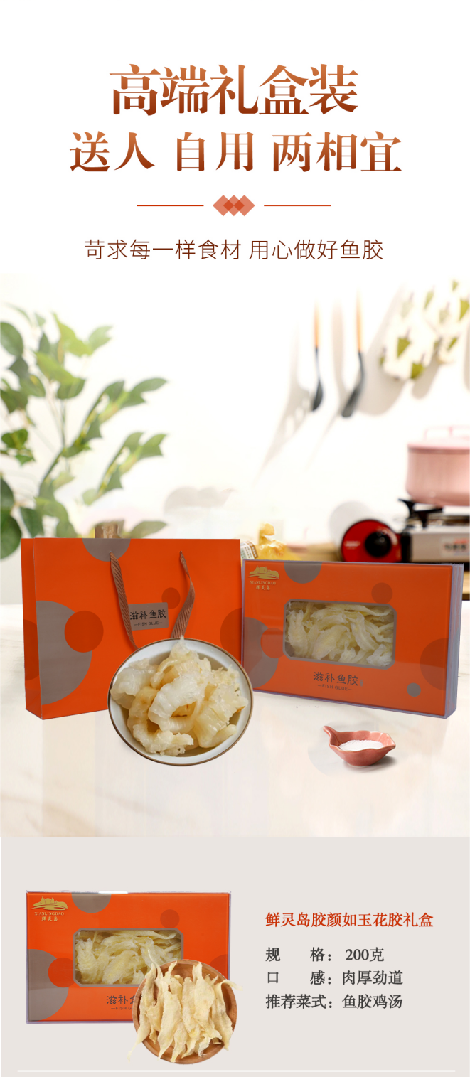 商品名称:鲜灵岛胶颜如玉花胶礼盒200g