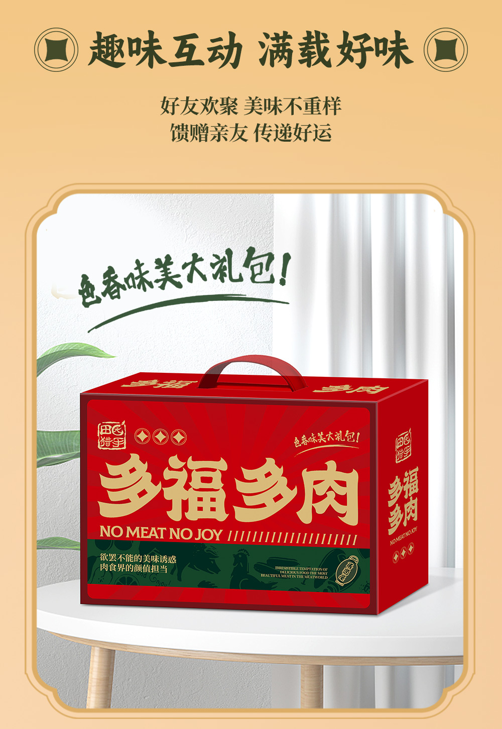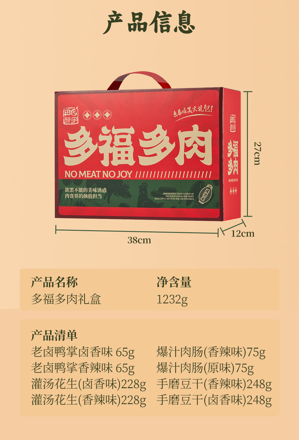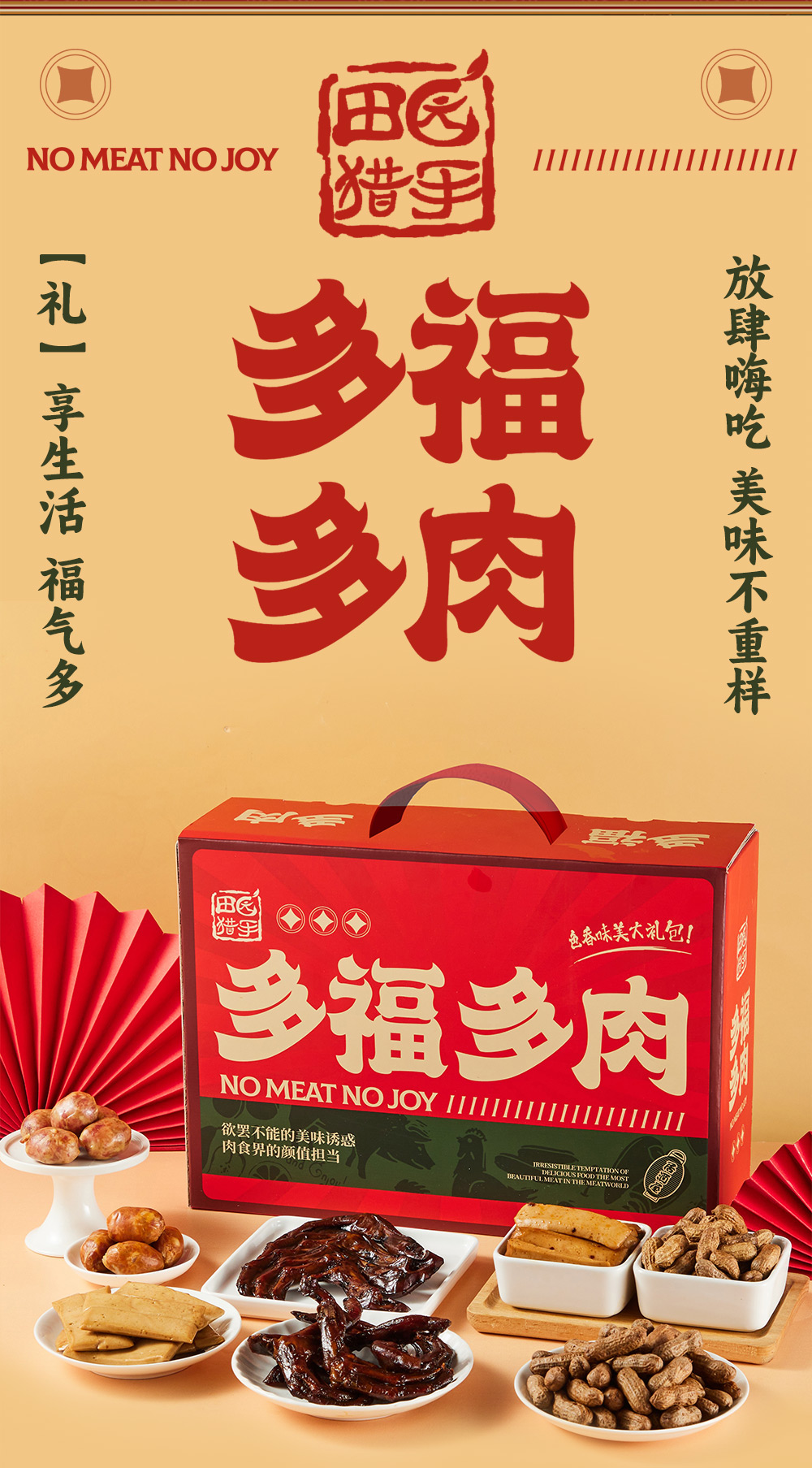 商品名称:田园猎手多福多肉零食礼盒1232g