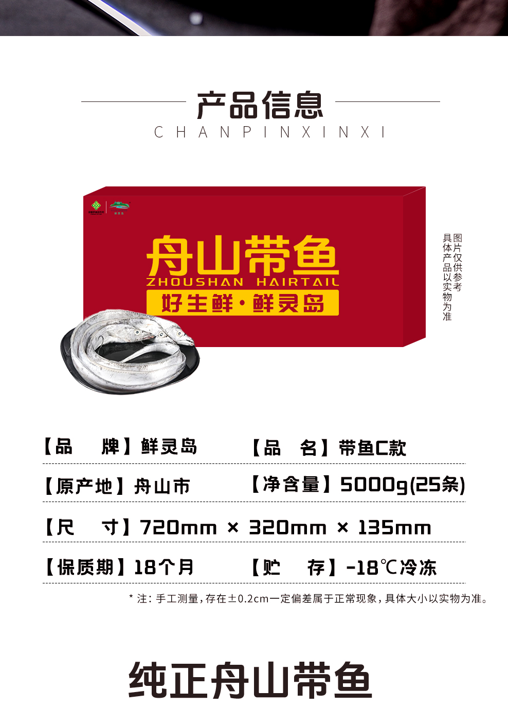 商品名称:【顺丰配送】鲜灵岛舟山带鱼礼盒C款5000g