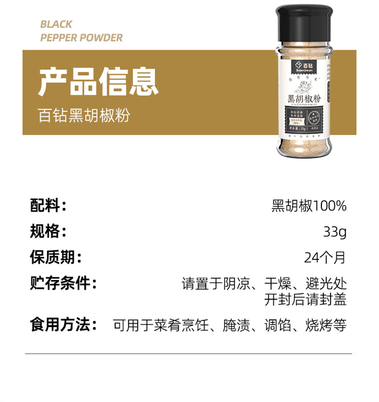 商品名称:Bakerdream/百钻黑胡椒粉33g*2瓶