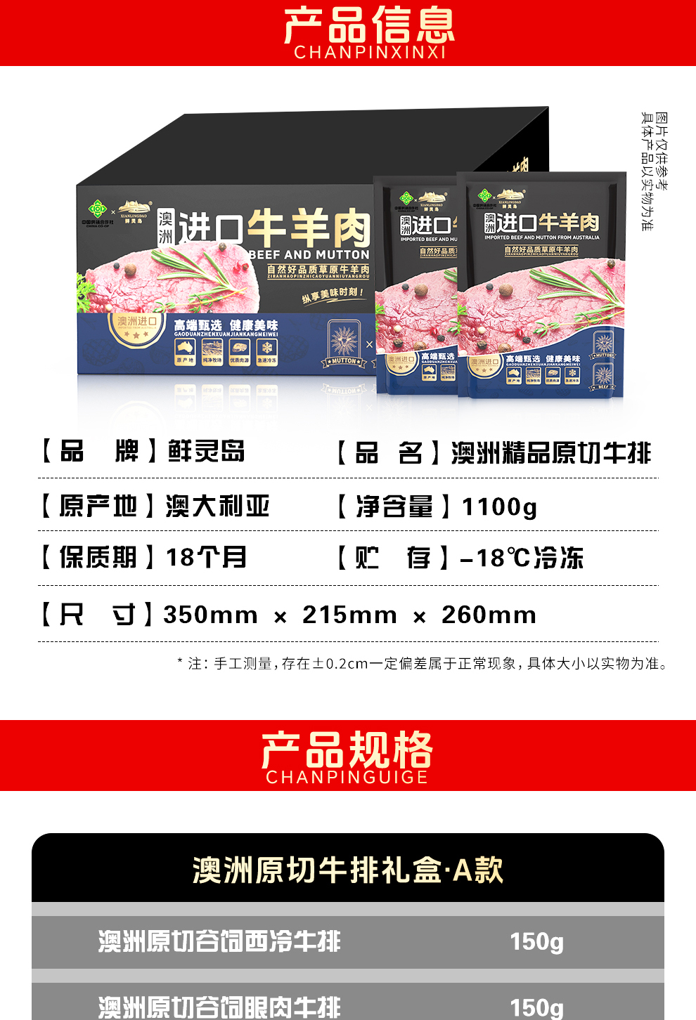 商品名称:【顺丰配送】鲜灵岛澳洲原切牛排礼盒A款1100g
