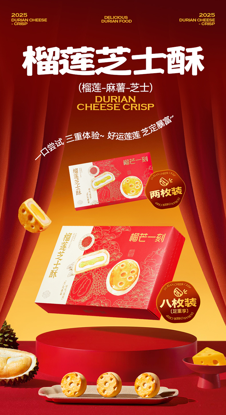 榴芒一刻榴莲芝士酥组合45g*8枚*1盒(配礼袋)+45g*2枚*1盒(无礼袋)