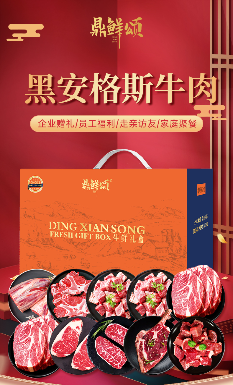 【顺丰配送】鼎鲜颂黑安格斯牛肉生鲜礼盒698型3500g