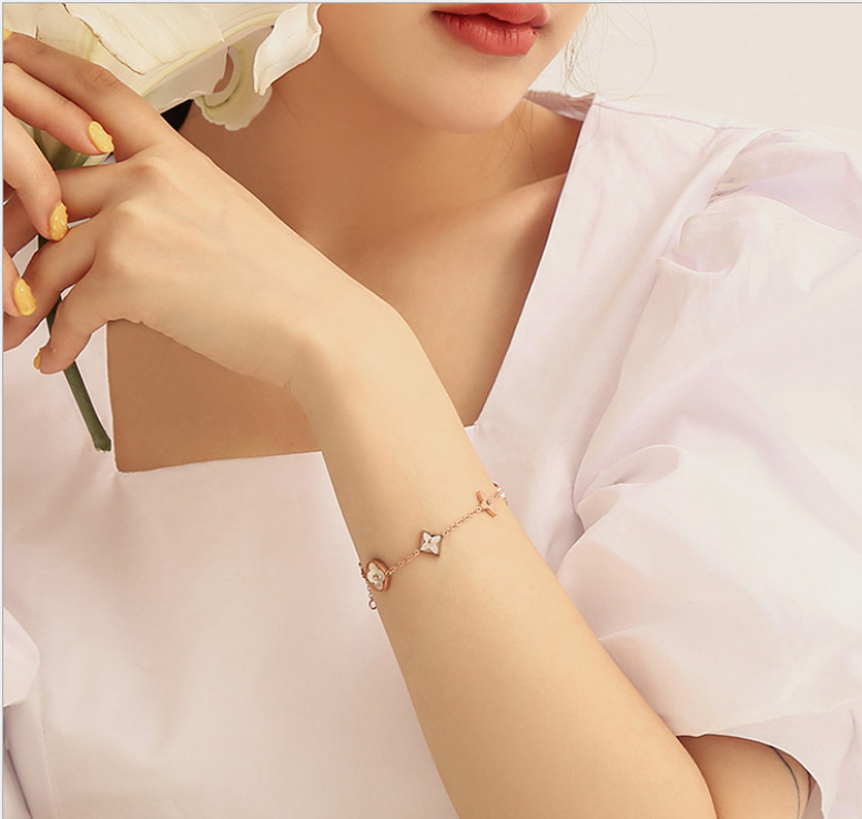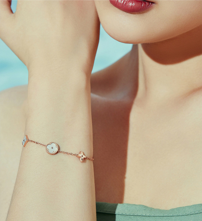商品名称:香港周六福南非真钻四叶草全家福手链