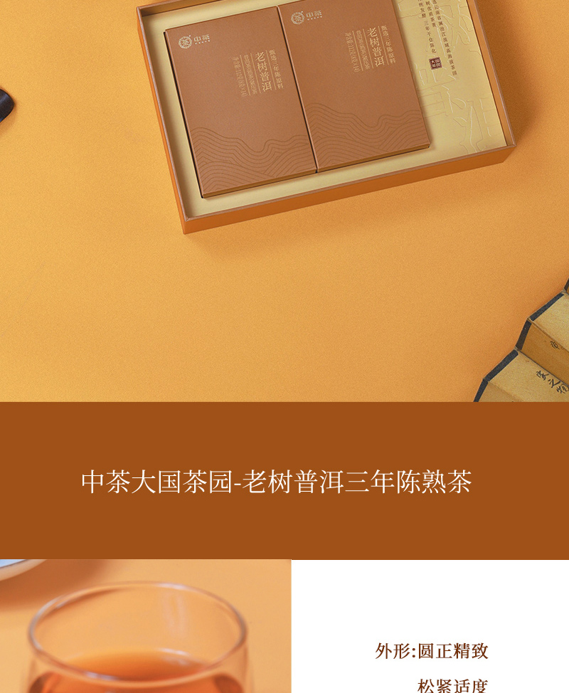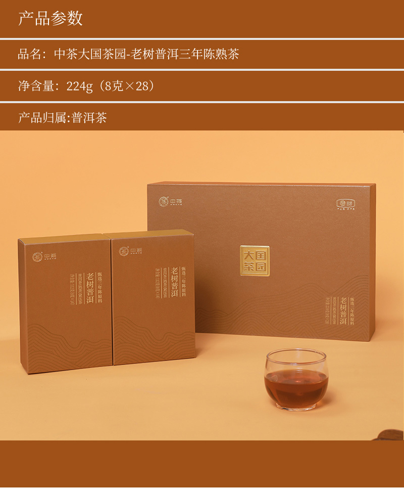 商品名称:中茶大国茶园老树普洱三年陈熟茶礼盒224g