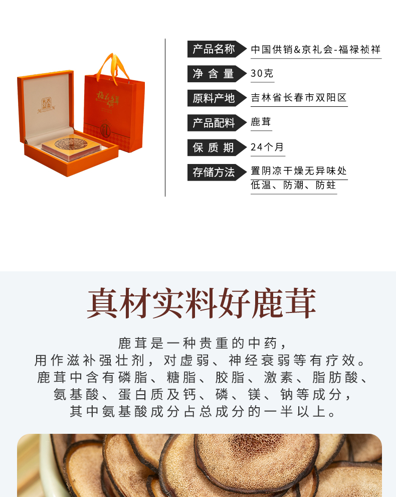 商品名称:京礼会福鹿祯祥鹿茸礼盒30g