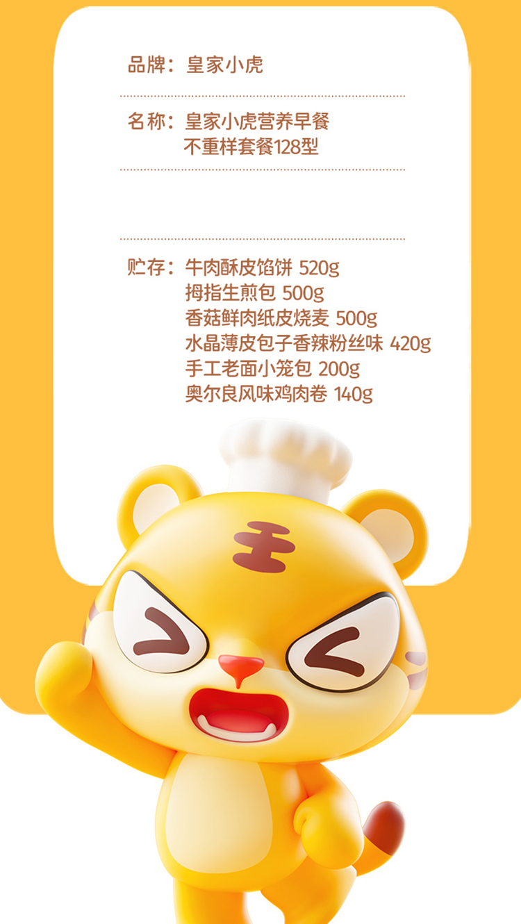 商品名称:皇家小虎营养早餐不重样速冻食品组合128型2280g