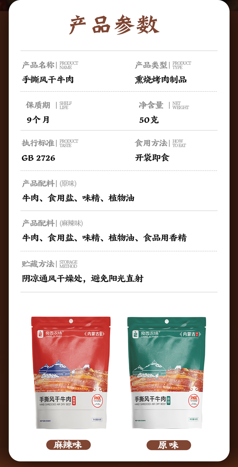 商品名称:良西农场手撕风干牛肉50g*2袋